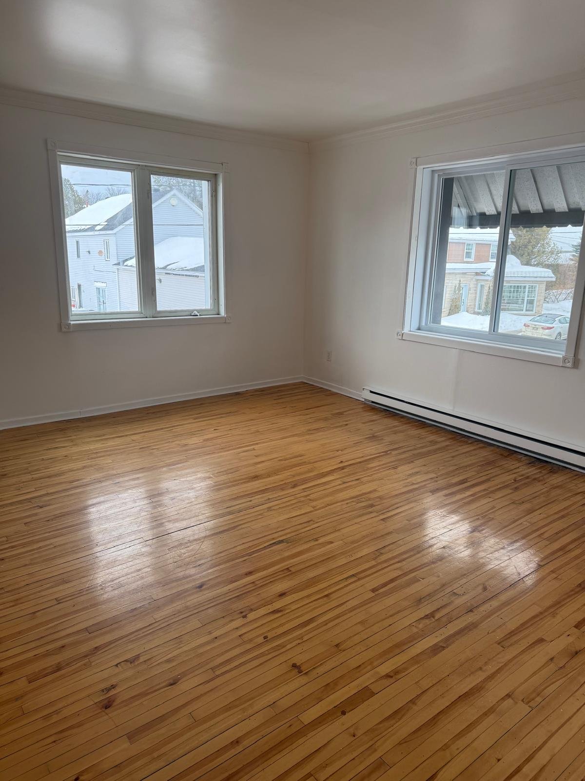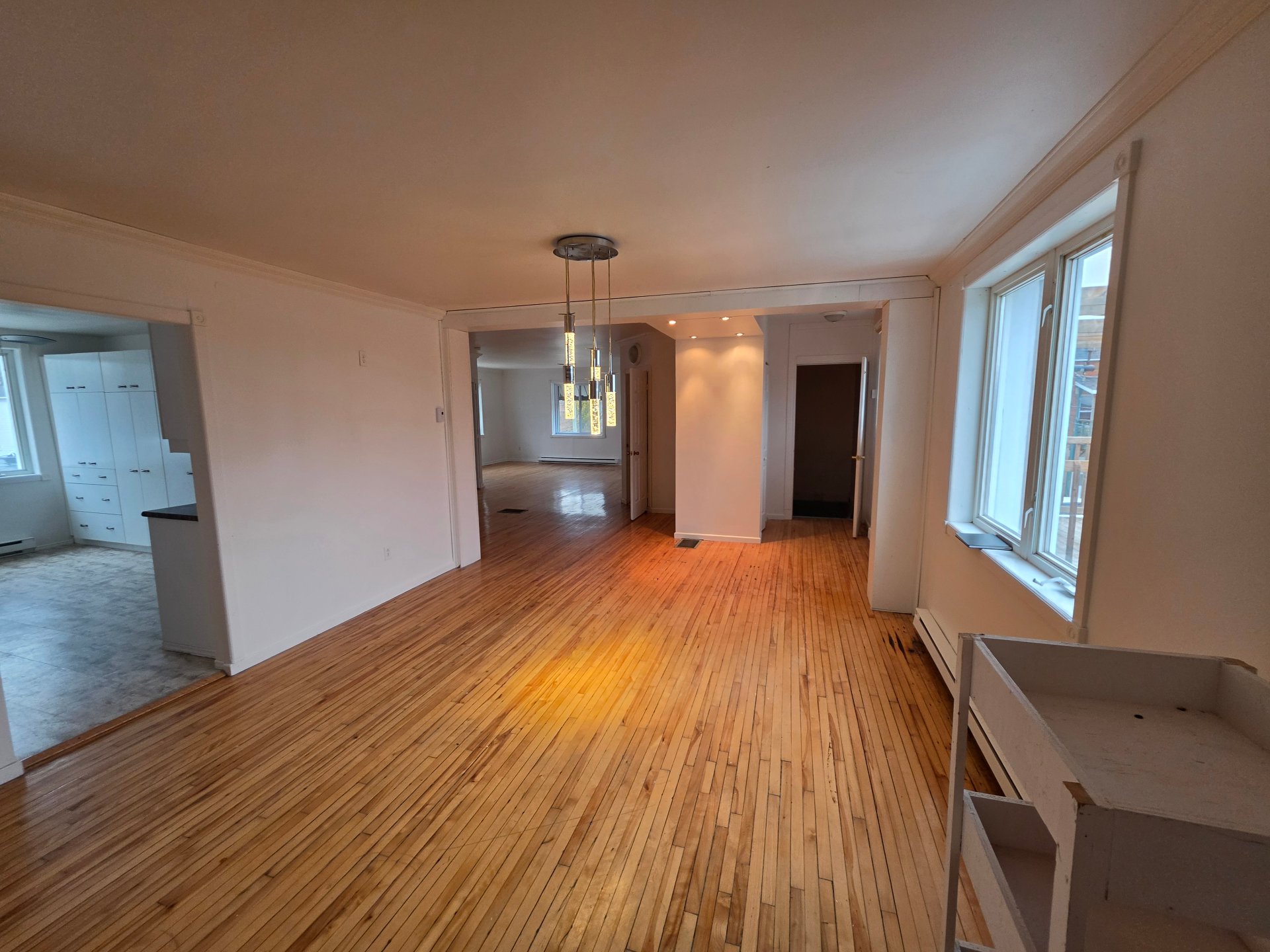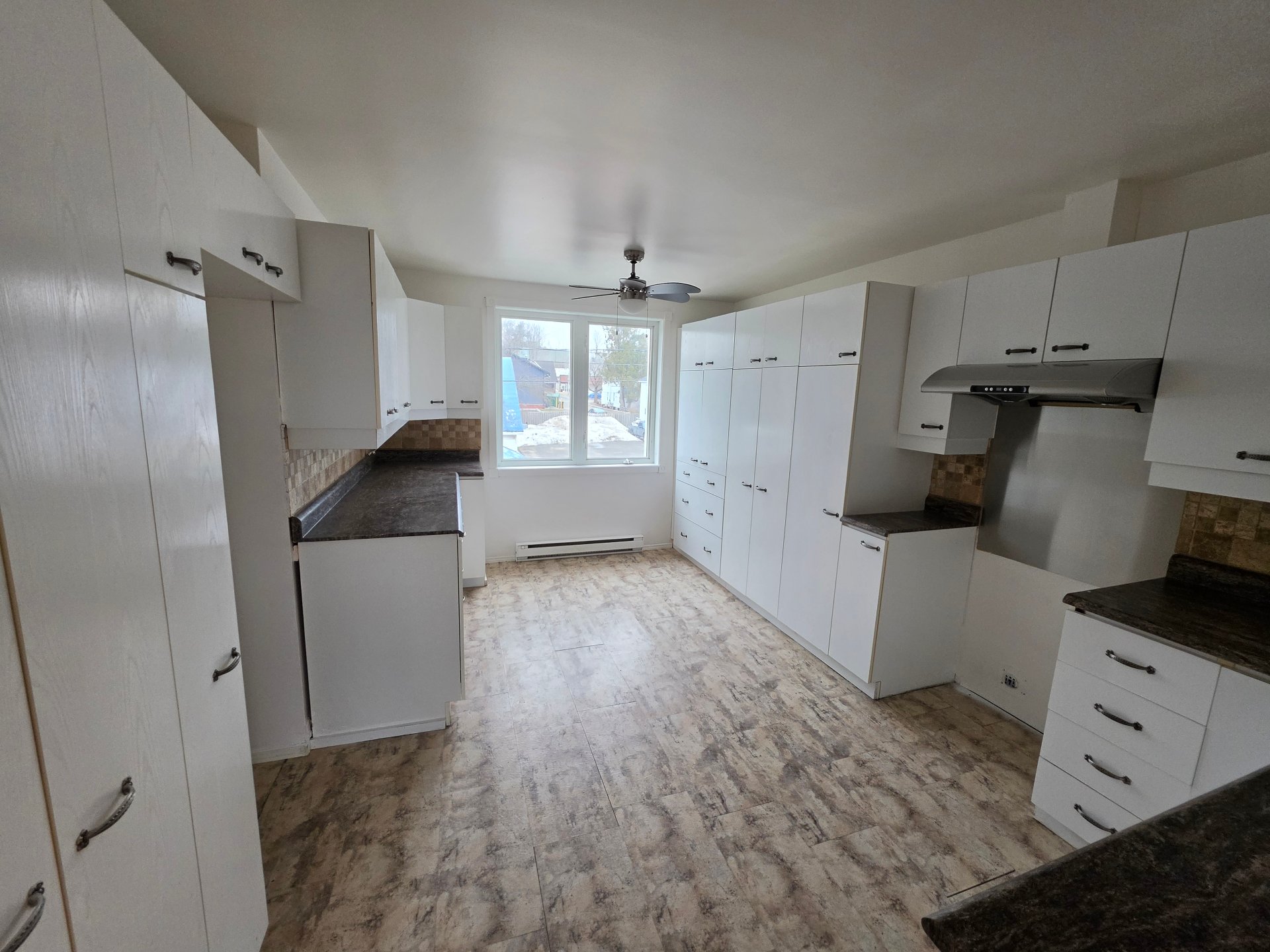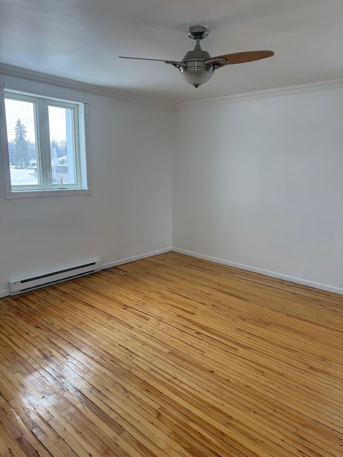 This 3-bedroom, 2-bathroom apartment is located on the second floor of a duplex in a quiet neighborhood. The living areas are spacious with hardwood floors. It's conveniently located near elementary and high schools, close to ATV and snowmobile trails, cross-country ski trails, and approximately 20 minutes from La Montagne Coupé ski resort. Ideal for a small family seeking tranquility and outdoor activities.
