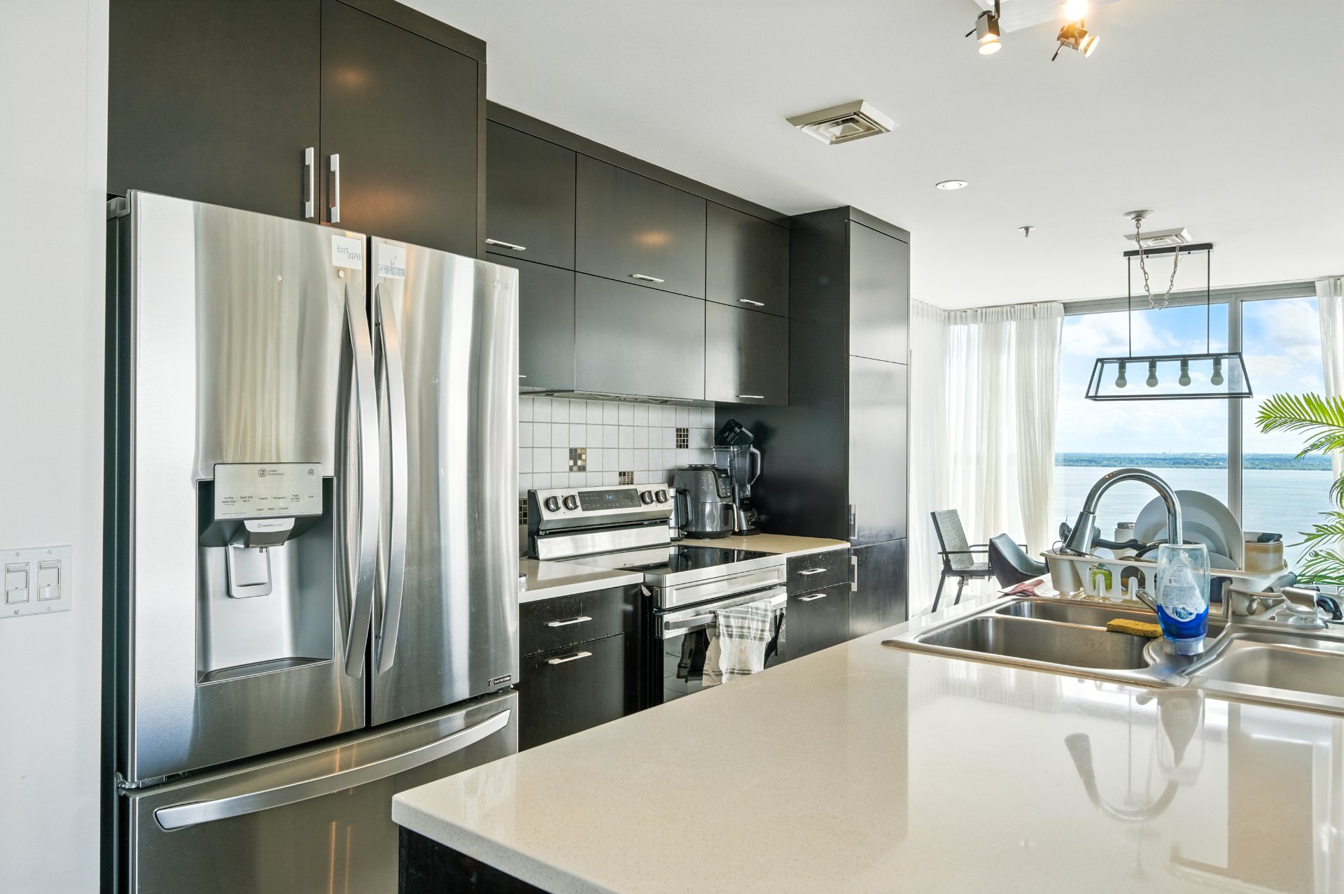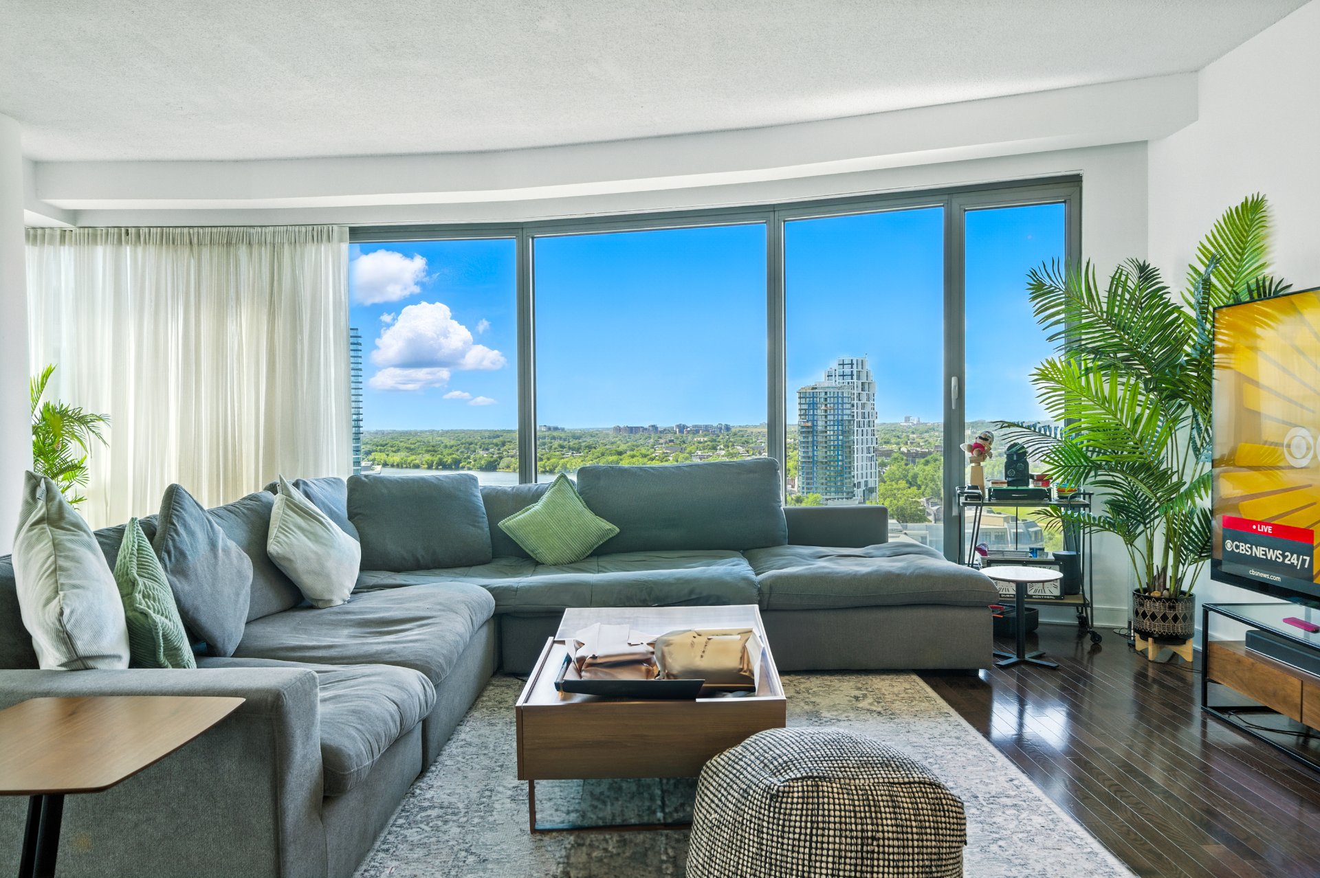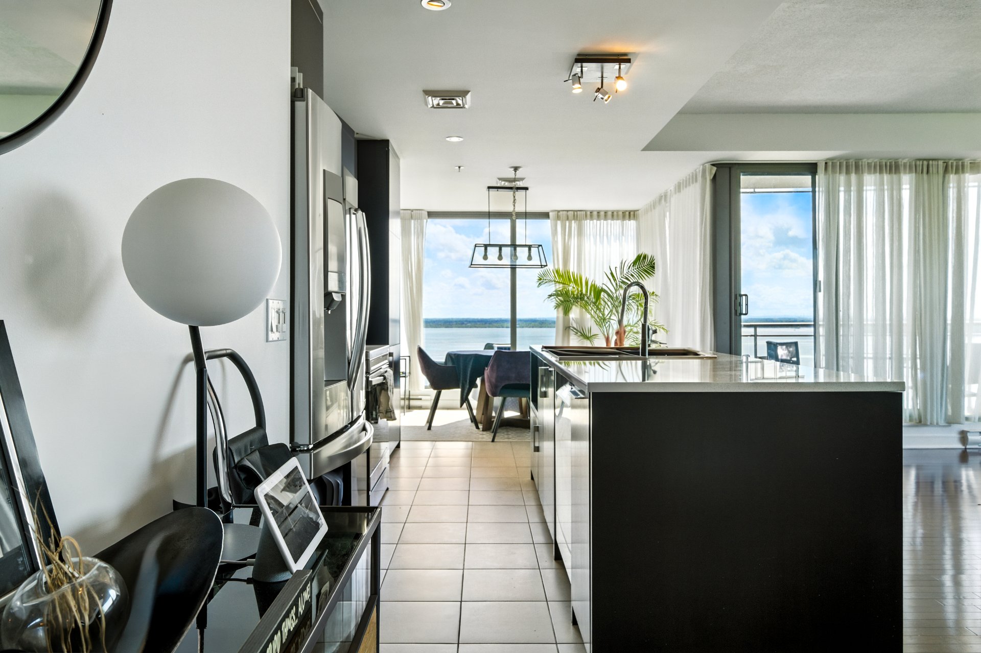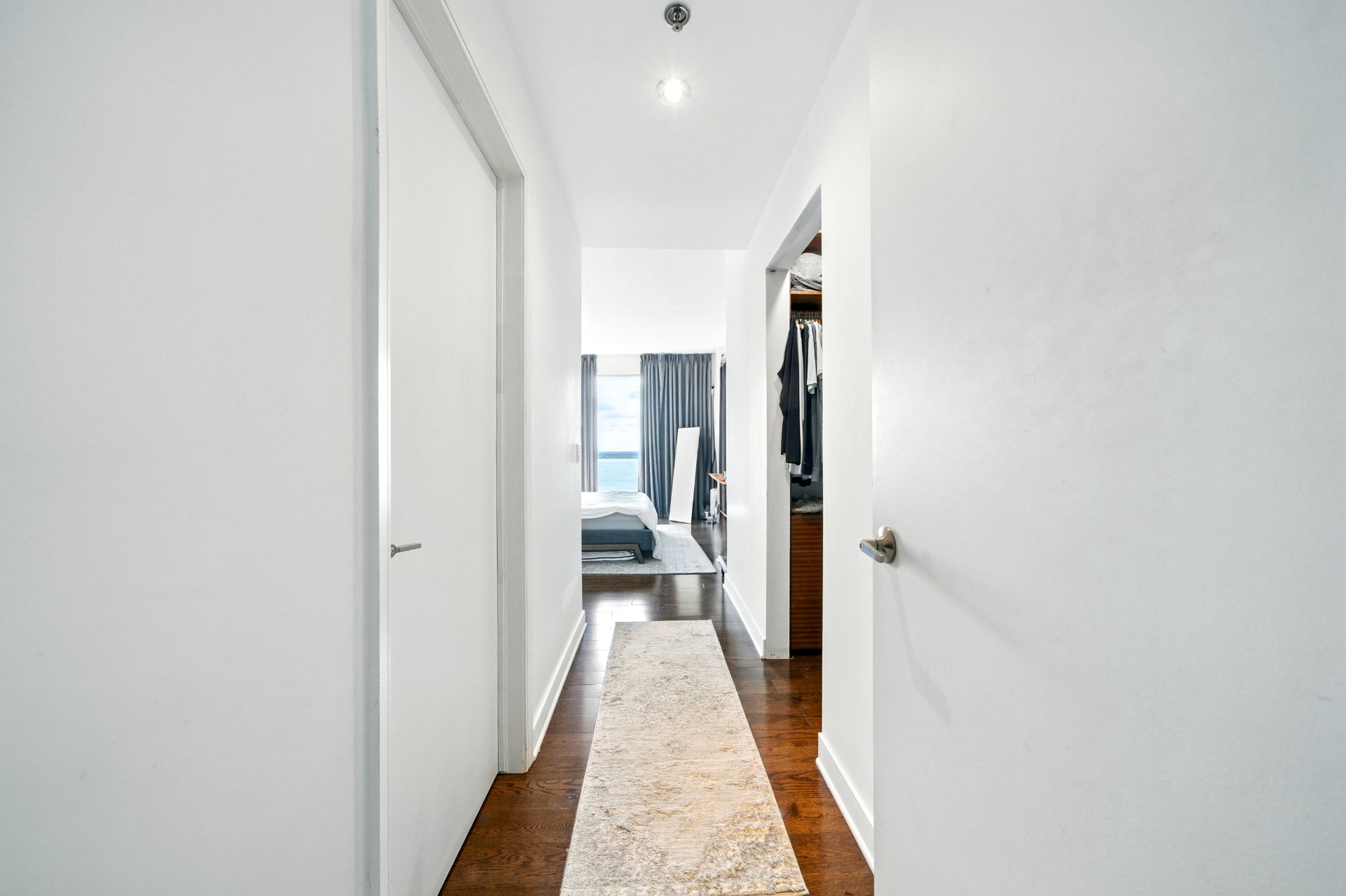 Sumptuous condo on the 22nd floor of the prestigious Vistal 1, LEED Gold certified, offering 1,485 sq. ft., 2 bedrooms, 2 bathrooms, abundant windows and panoramic views of the river and golf course. Bright open concept, wood floors, kitchen and bathrooms with wood cabinets and granite countertops, private balcony, storage and indoor parking. Geothermal building with 24/7 doorman, pools, spa, gym, conference room and more. Ideal location on Nuns' Island, 5 minutes from downtown! See addendum for location requirements.