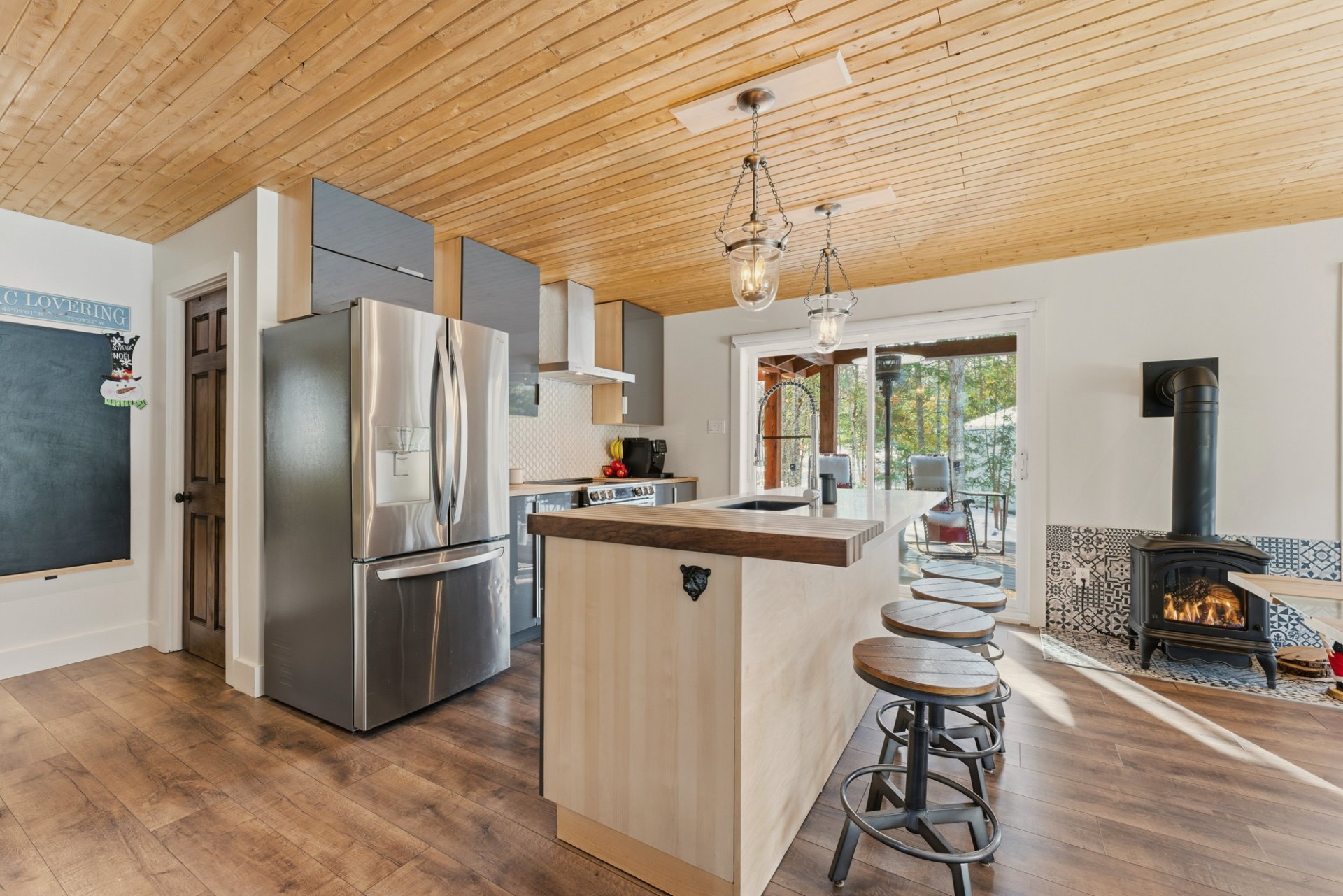 Fully renovated property in the heart of the Lac Lovering domain! Look no further! The opportunity you've been waiting for near a navigable lake is within reach. This home offers 3 bedrooms, 1 full bathroom and 1 powder room, along with beautiful living spaces thoughtfully designed in a charming chalet style. Its size makes it perfect for entertaining, while also being ideal for comfortable family living or for a couple. Unique opportunity: a dock rental has already been reserved for the upcoming summer season. A visit is a must!
