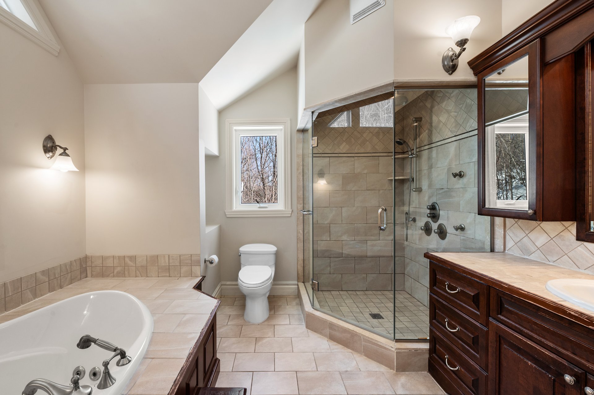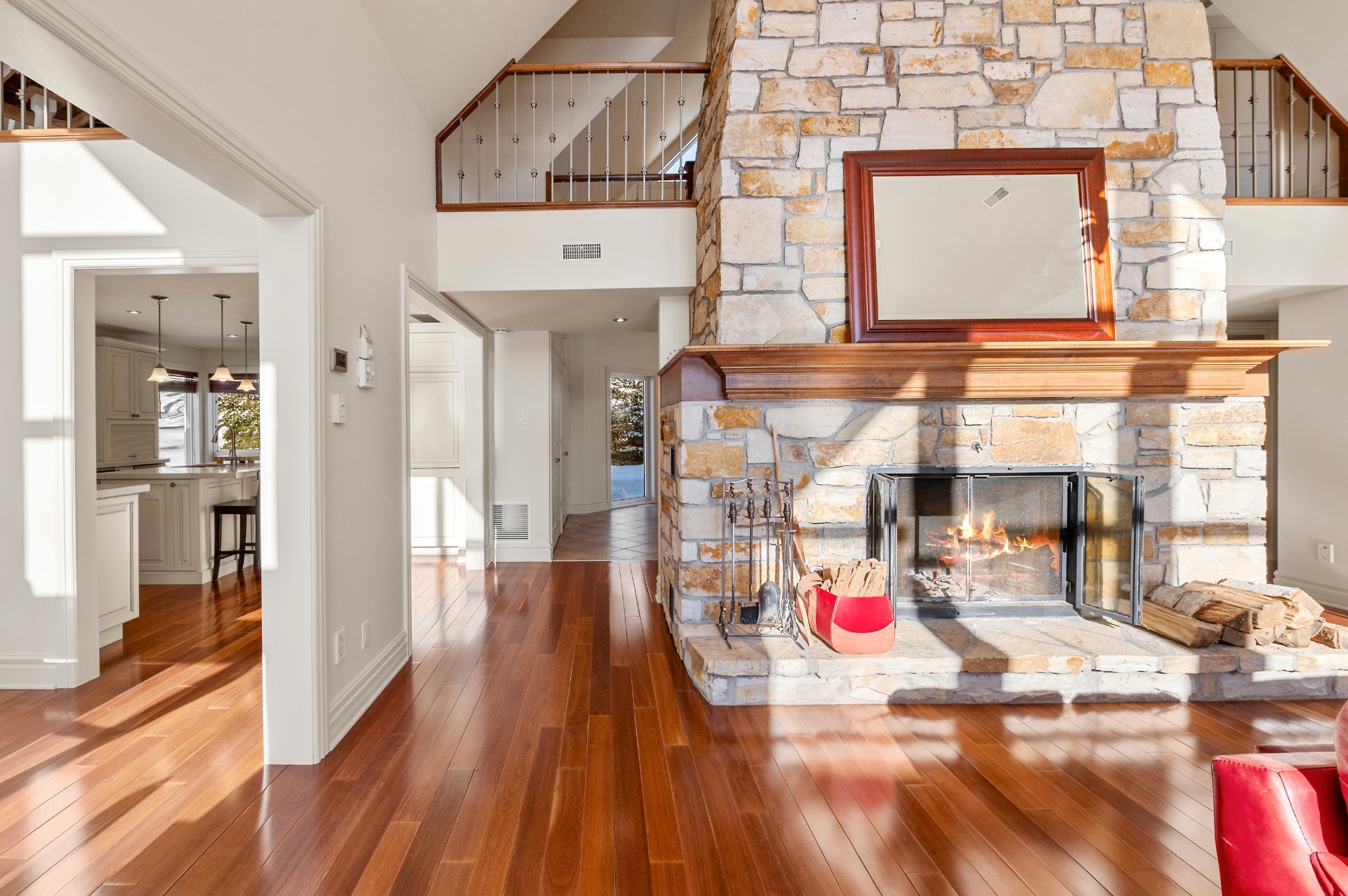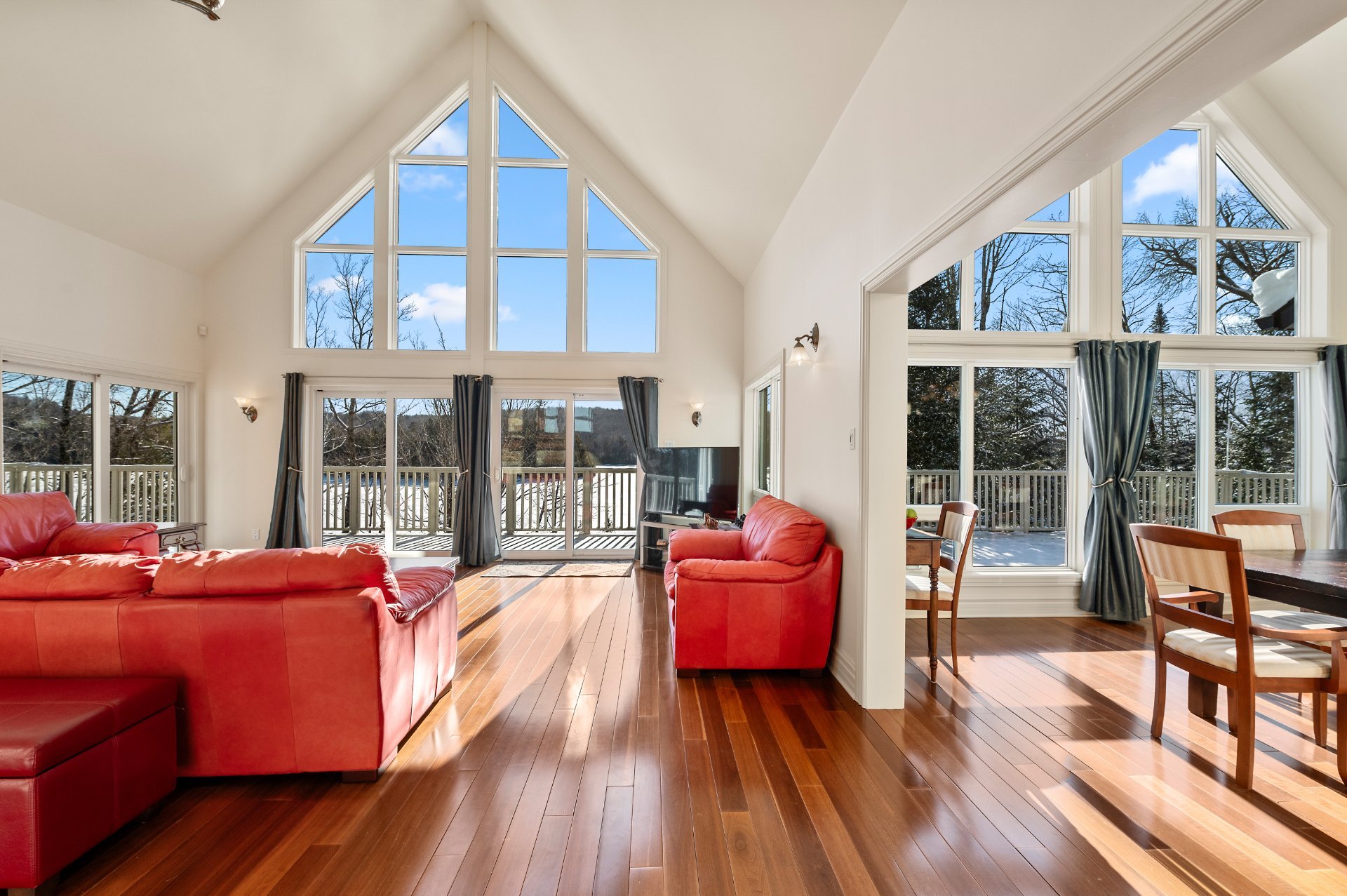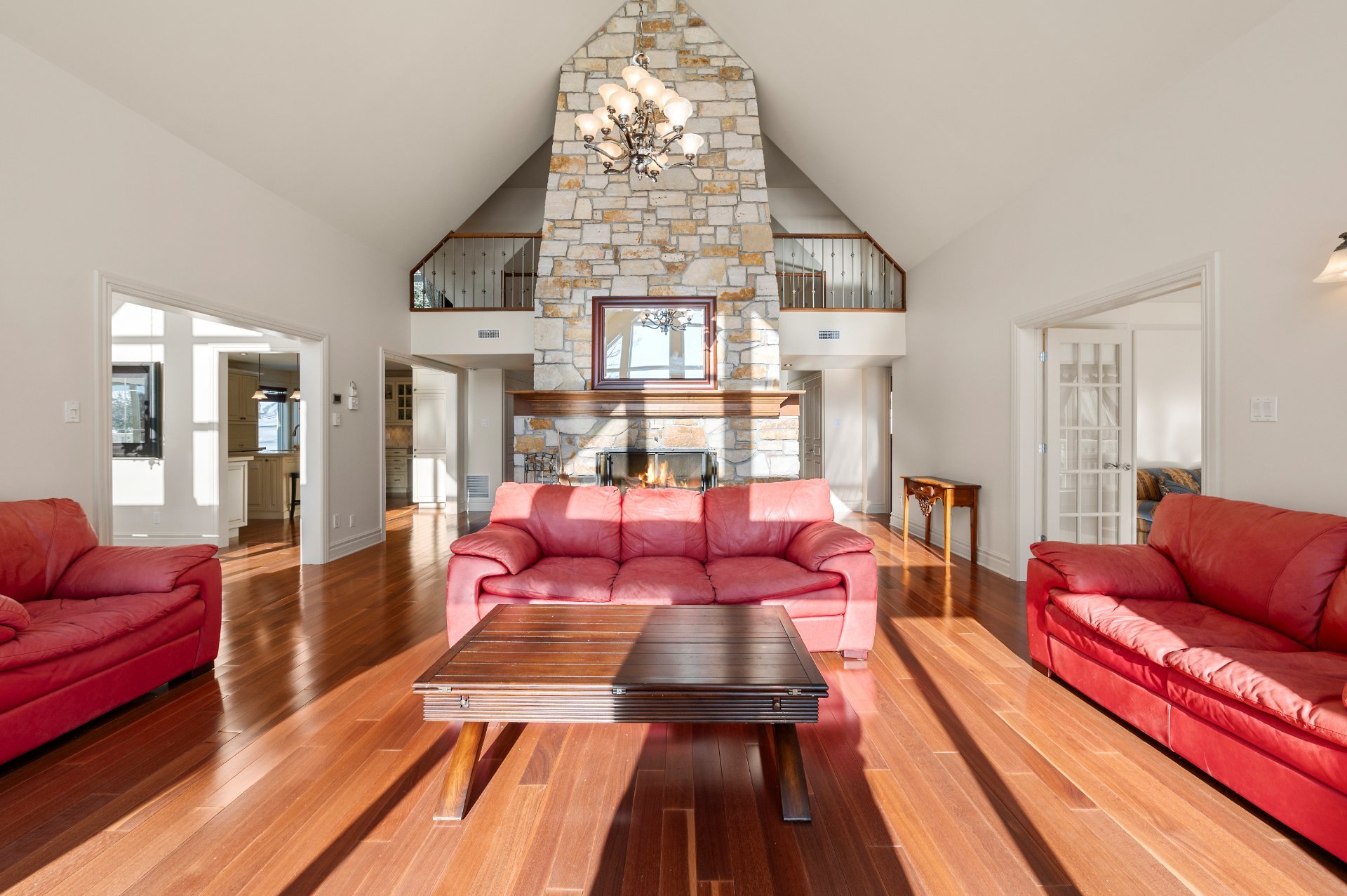 cathedral ceilings reaching almost 20 feet and abundant