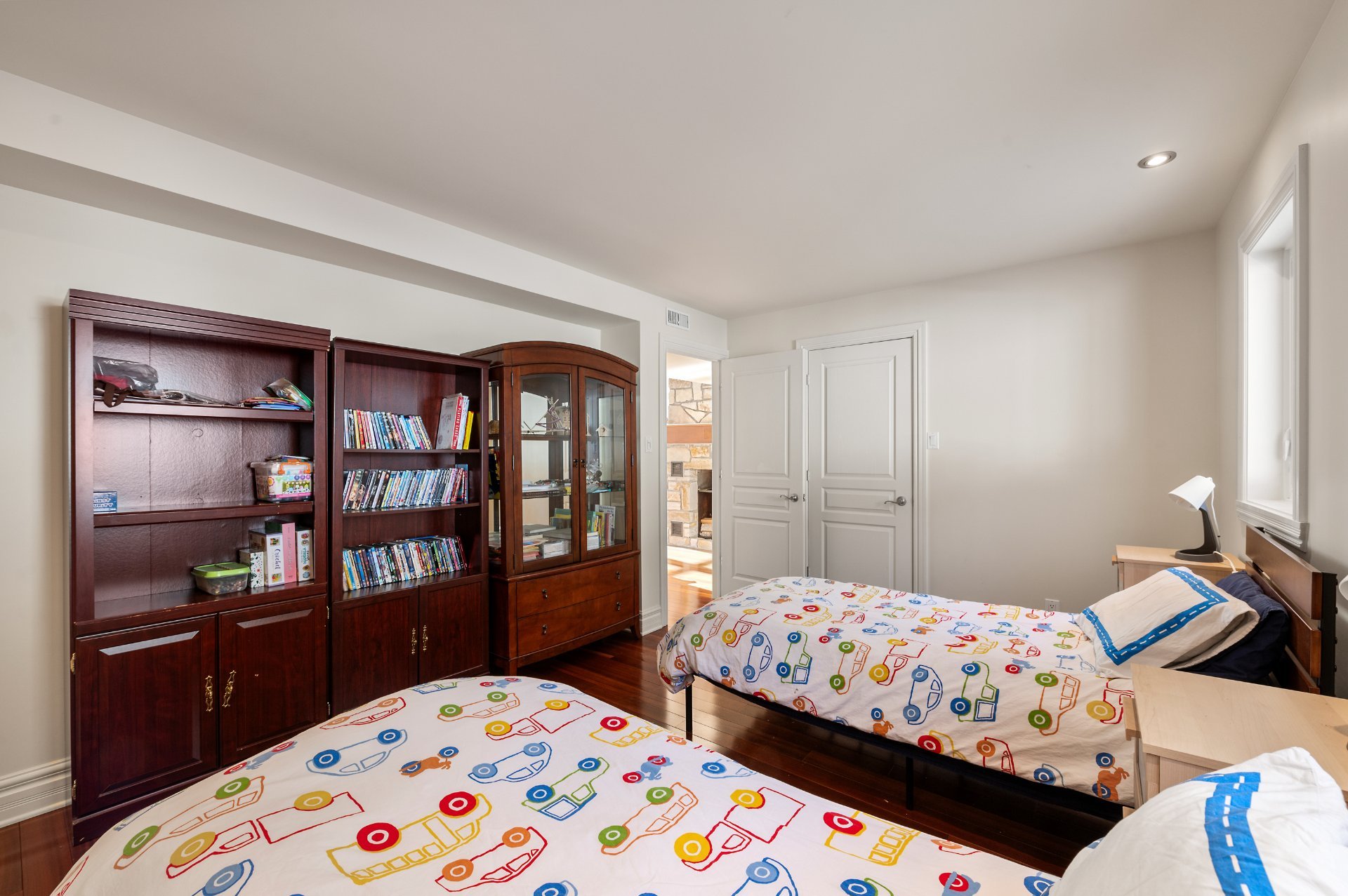This level also includes two bedrooms and a full bathroom.