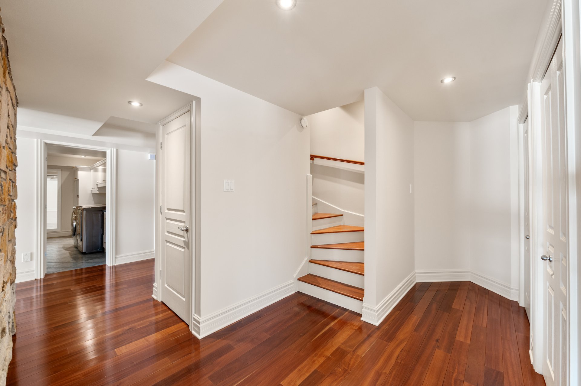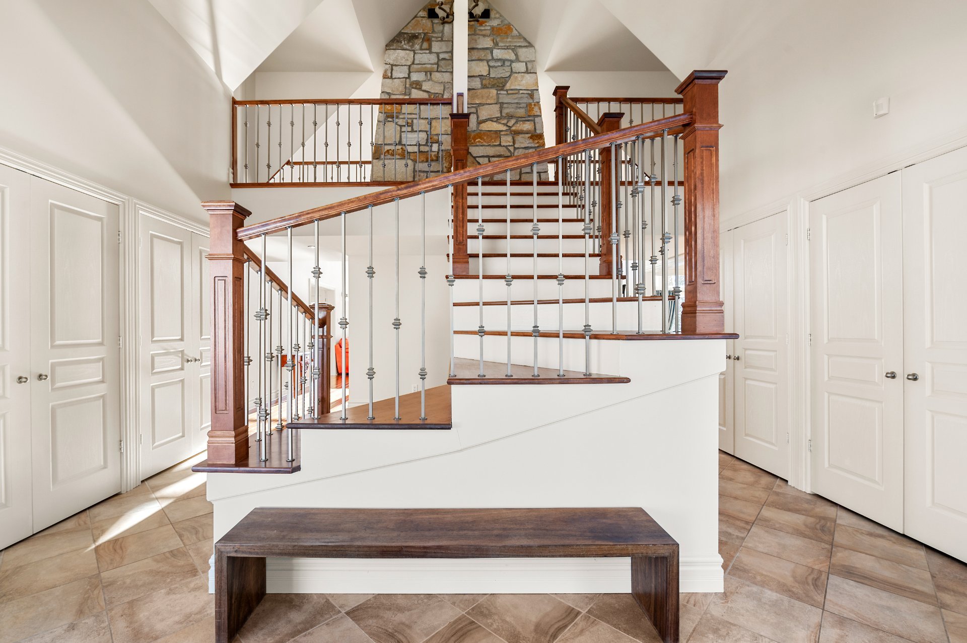 staircase sets the tone. The first floor opens onto the