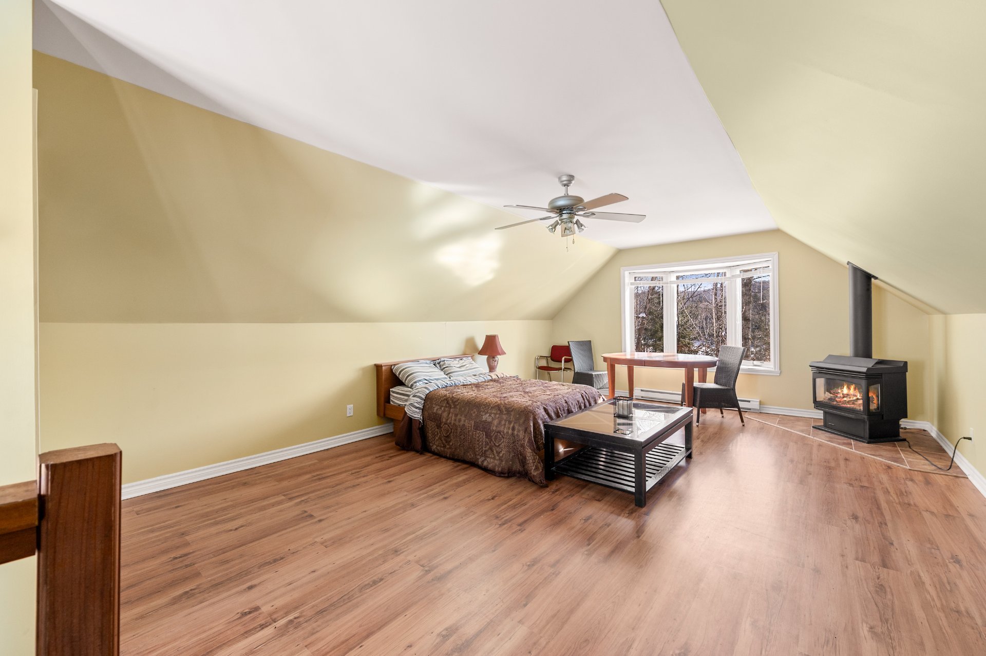 wood-burning fireplace, adding to the home's cozy