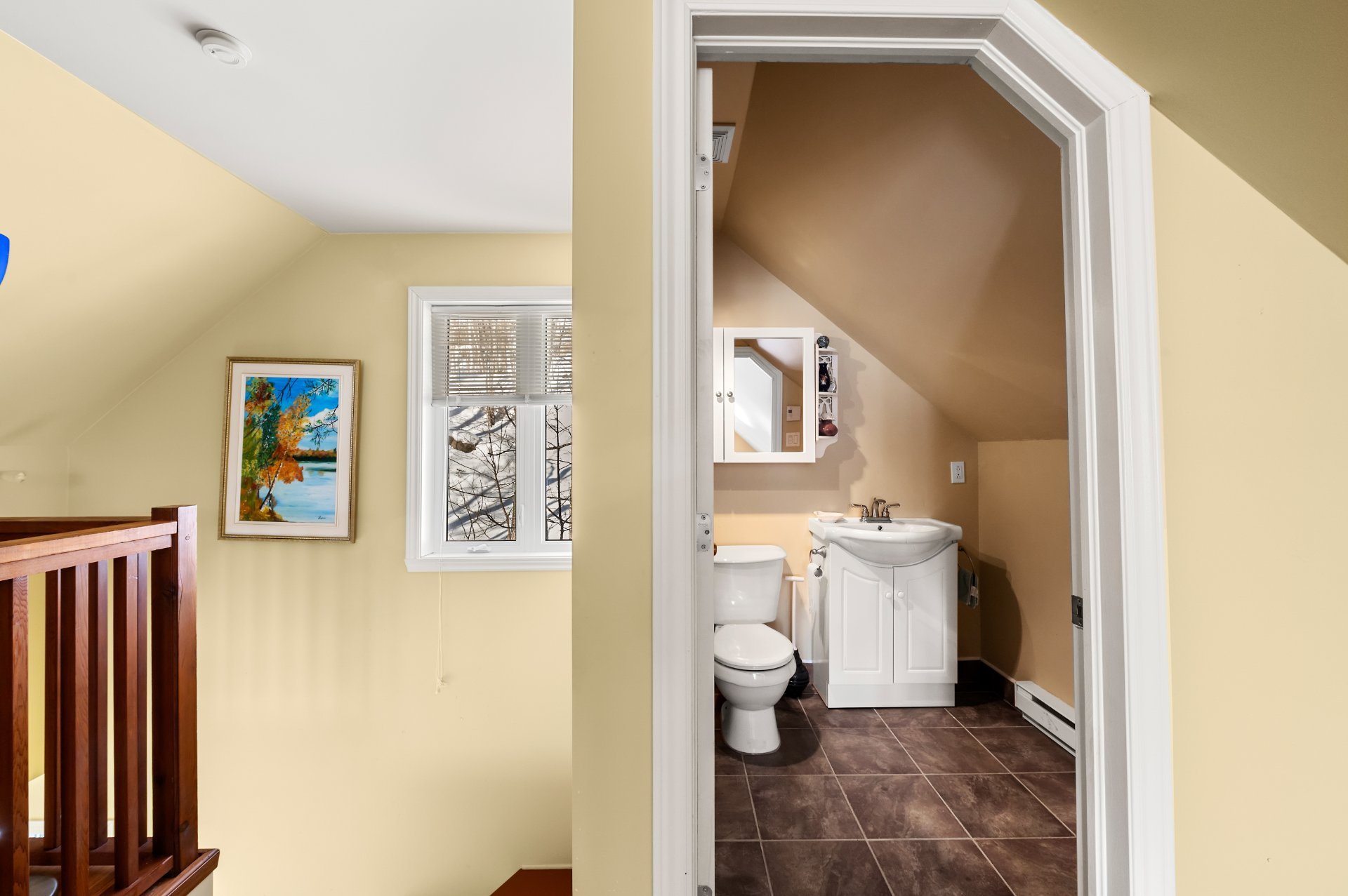 powder room and a gas fireplace complete the property,