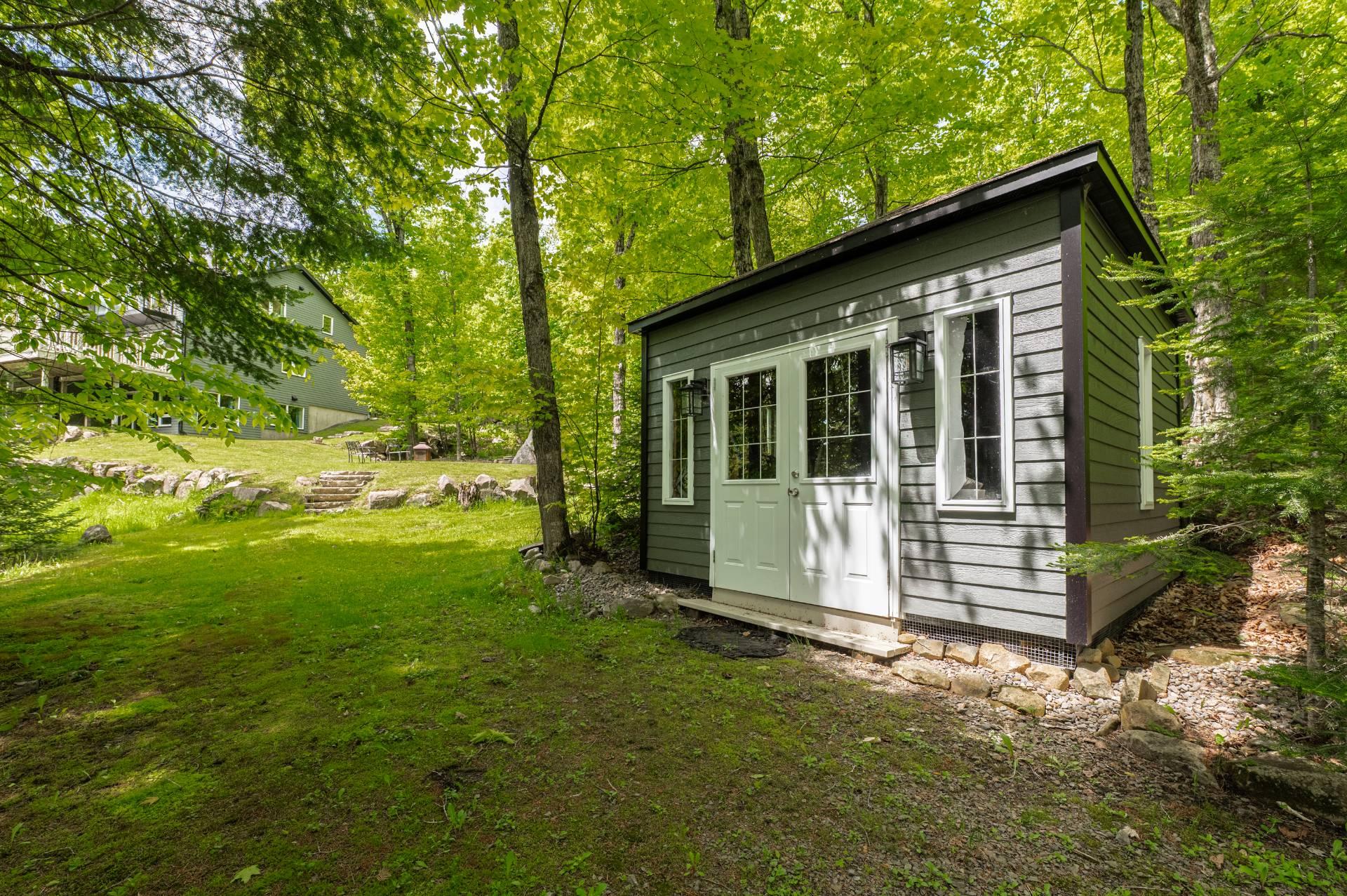 A 28 x 28-foot double garage with an upstairs loft, a