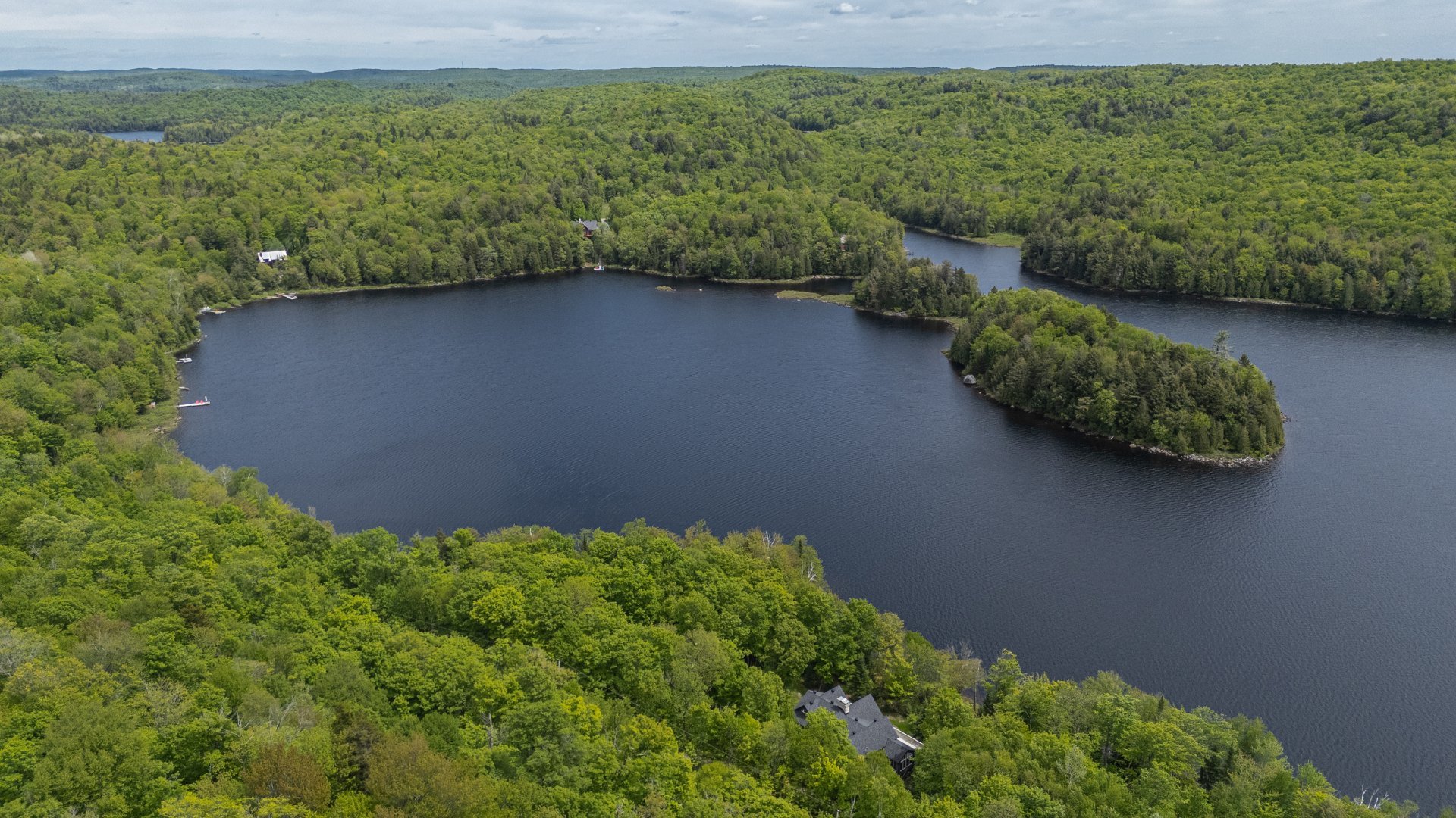 Magnificent property located in Wentworth, in the Territoire des Lacs. An exclusive community where luxury and nature meet for an unparalleled quality of life. This spectacular property features a private 12-acre lot with 720 feet of waterfront on renowned Lac Lemieux. This luminous residence offers breathtaking spaces with cathedral ceilings, 3 bedrooms including a master suite, 3 bathrooms, 2 spacious family rooms, 2 wood burning fireplaces, a veranda and a two-car garage with loft. Only 1h15 from Montreal.