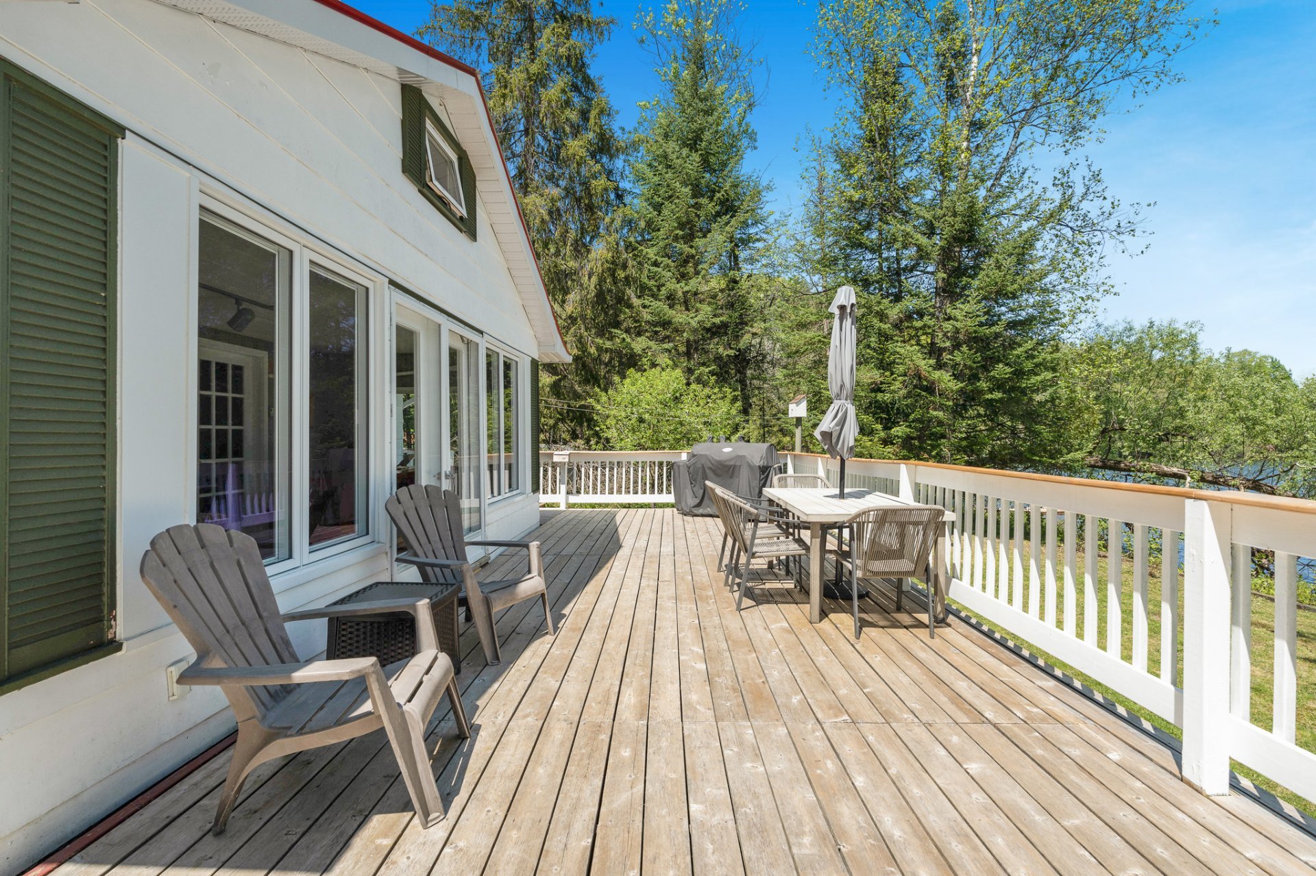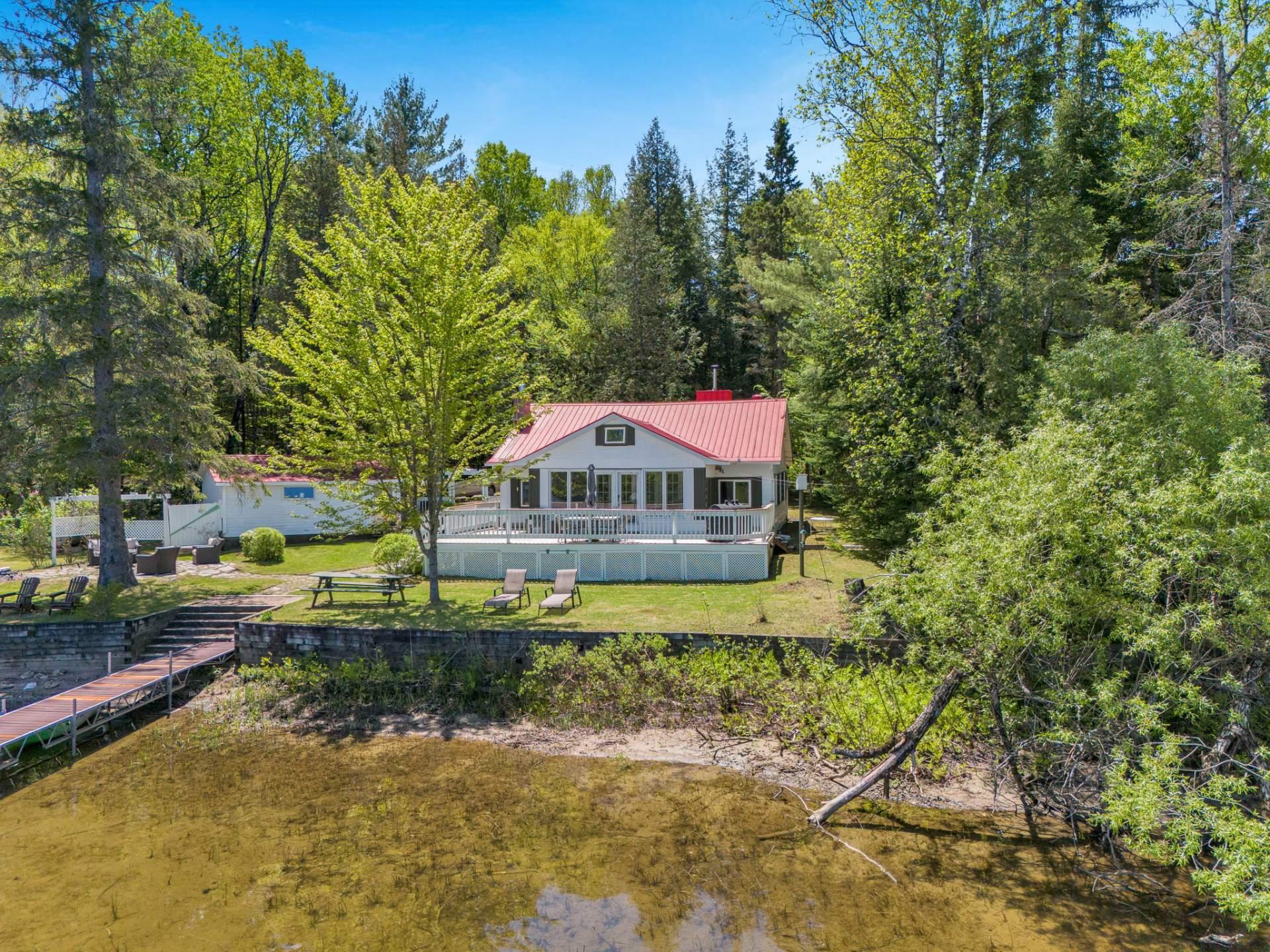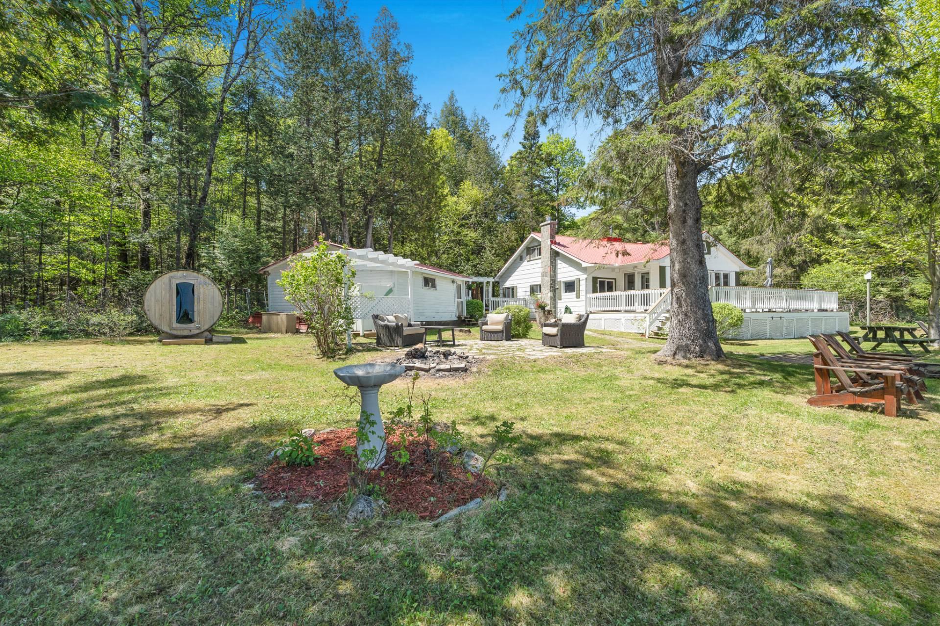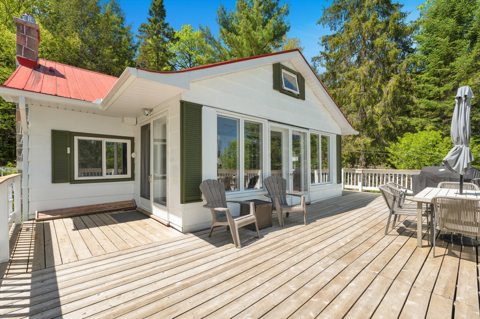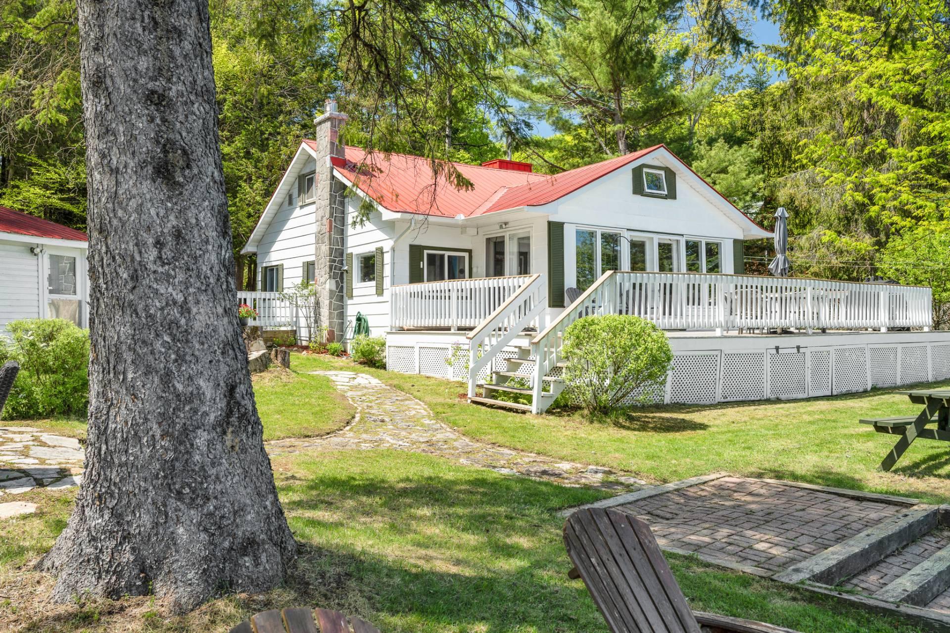 Rare classic original 4 bedroom cottage grandfathered close to the 260 foot shoreline on the coveted Lac St-Pierre, with a long doc & sprawling sandy beach in front of a retaining wall, above which is a lakeside grassy yard with mature trees & large flagstone patio. Also featuring an expansive lakeside deck, a 160 sq/ft solarium with seating and dining area, A massive stone chimney with wood burning fireplace insert, upper level family room and fun loft area for the kids to play, camp out and look out onto the water. This unique haven radiates charm and authentic cottage vibes. Sold mostly furnished! Come and let yourself be enchanted.