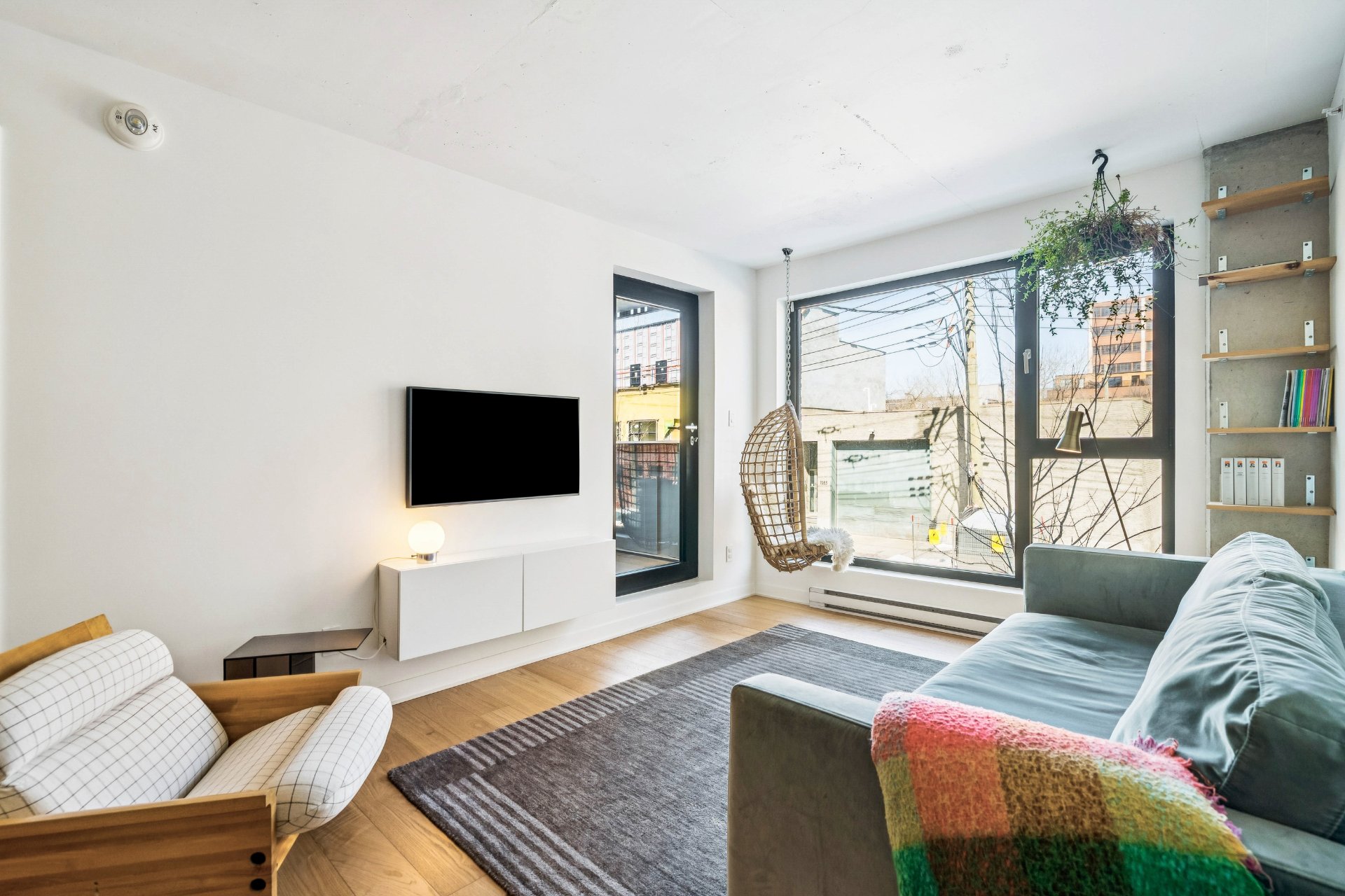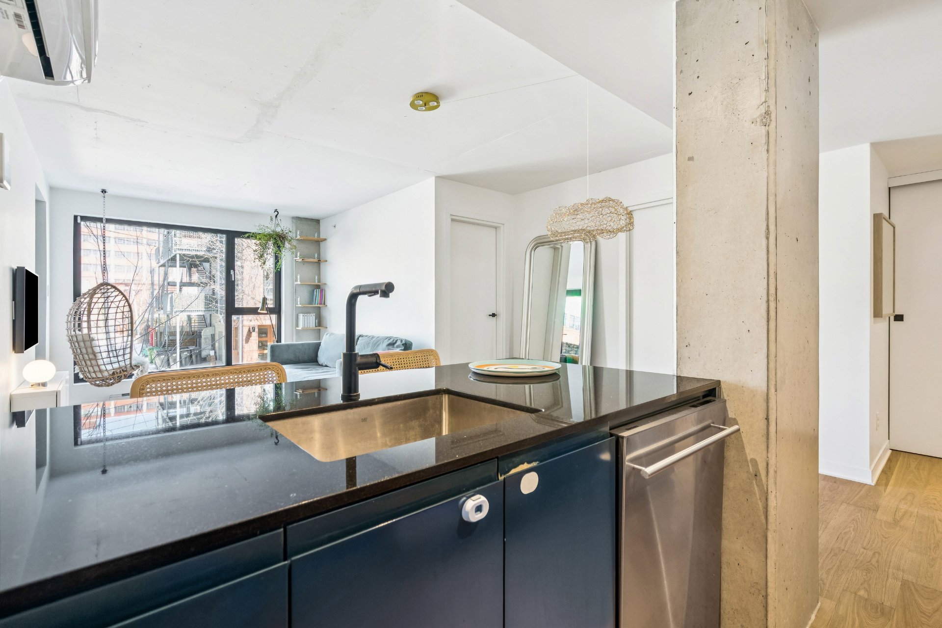 Beautiful modern 2-bedroom, 2-bathroom condo located in the prestigious Queen Alix project, a contemporary 24-unit building recognized for its refined, award-winning architecture in the heart of the vibrant Mile-Ex / Marconi-Alexandra neighborhood. From the moment you step inside, you will be charmed by the open-concept living space flooded with natural light thanks to generous windows. The stylish, modern kitchen flows seamlessly into the living and dining areas, creating a warm and inviting space perfect for entertaining. Contemporary finishes and high-quality materials throughout give the unit a chic yet welcoming ambiance.