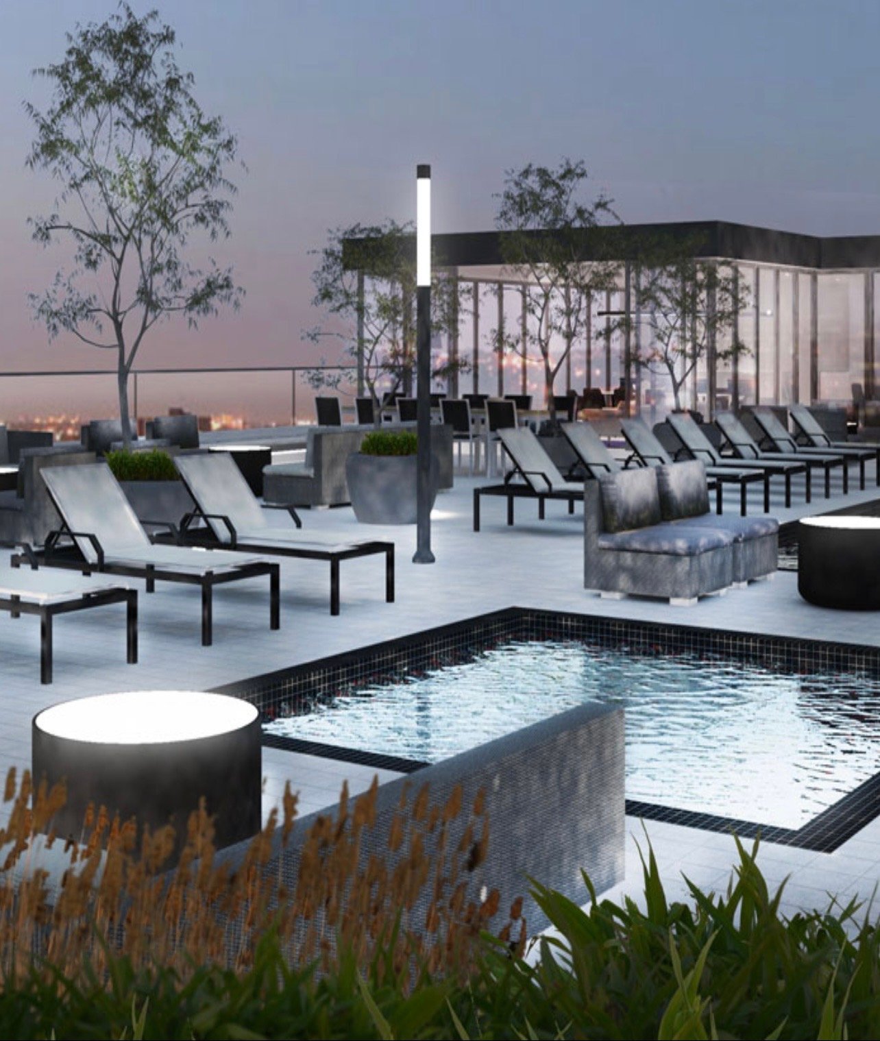 aire ouverte avec des fenêtres du sol au plafond qui