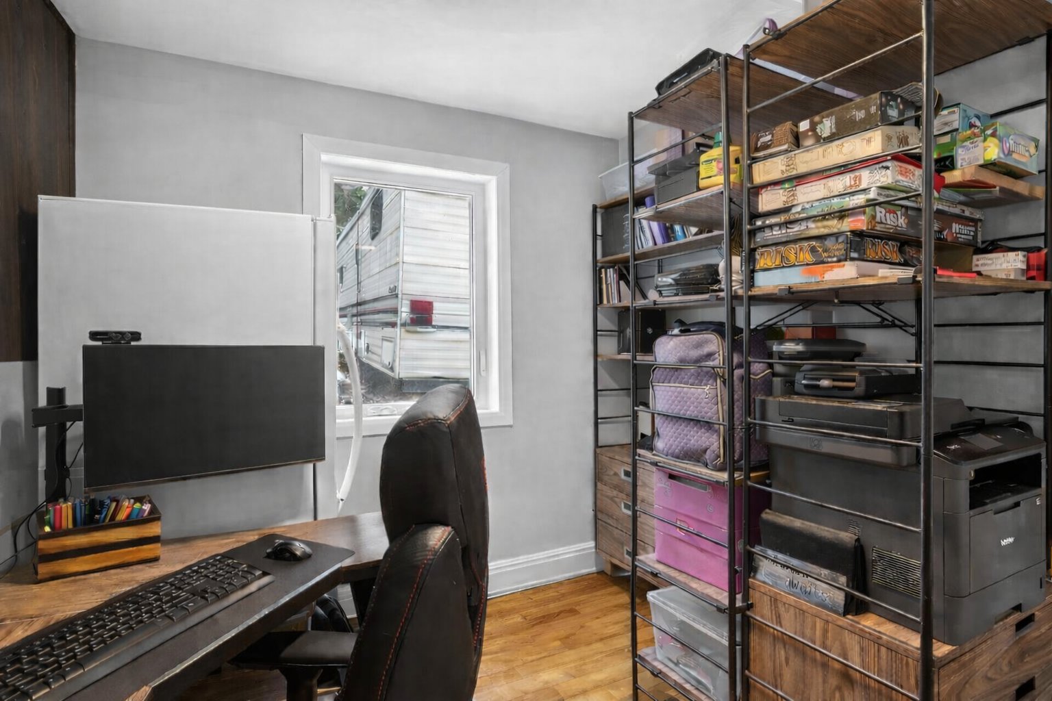 La propriété offre deux chambres à coucher de belles dimensions ainsi qu'une salle de bain rénovée avec douche indépendante et espace laveuse-sécheuse intégré avec discrétion.