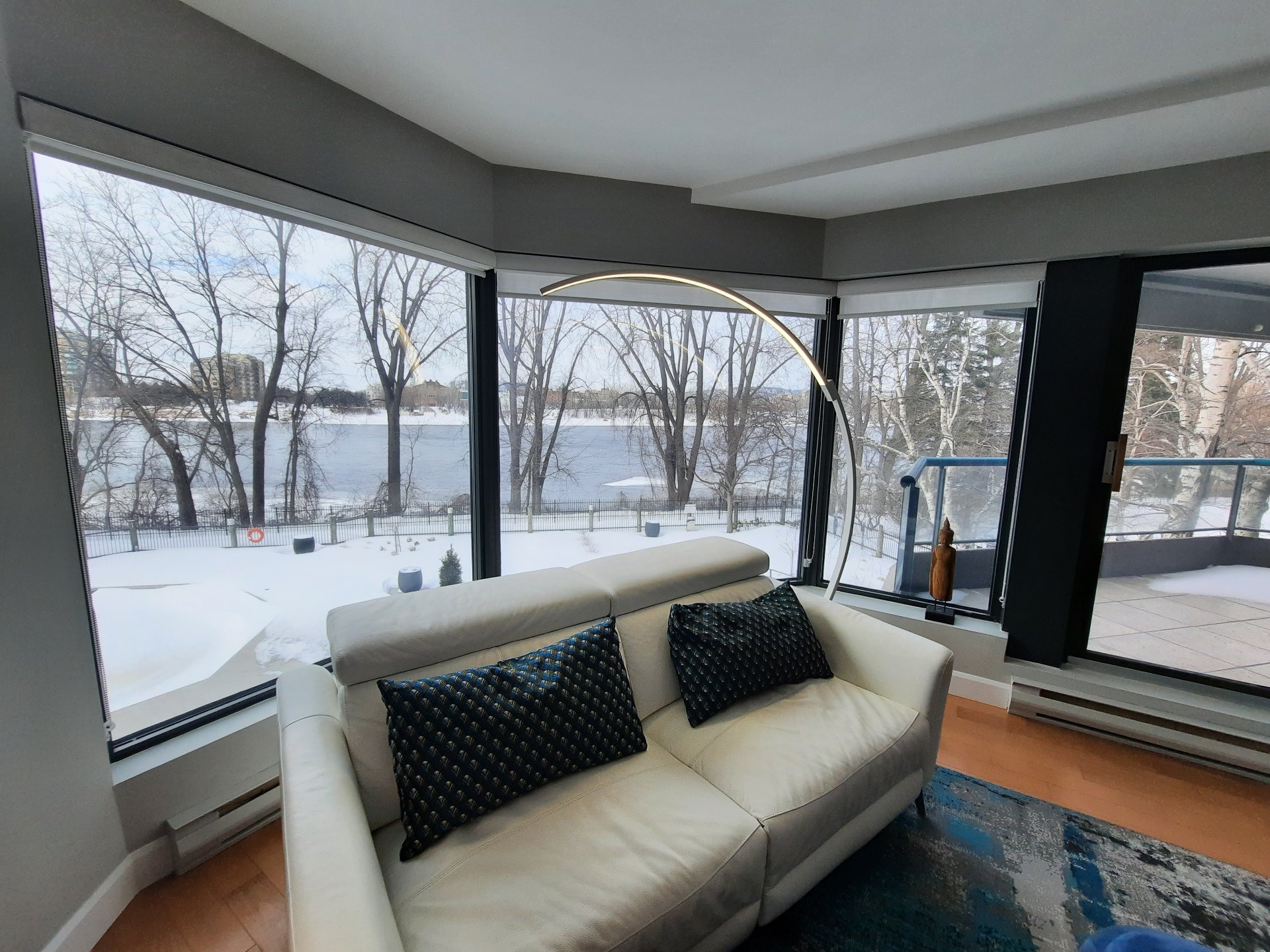 Vivre à l'île des Soeurs, au prestigieux Club Marin 1 ! Disponible 10 mars 2026. Cette unité vous offre une vue sans pareil sur le fleuve Saint-Laurent et une ceinture d'arbre mature. Pour les amateurs de lumière et de paysage, l'unité comprend; une façade vitrée, un grand espace de vie avec cuisine moderne, un pavillon des maitres avec chambre, pièce-penderie et salle de bain privés ainsi qu'une 2e chambre et une 2e salle de bain munie d'une douche vitrée. Inclusions au bail: (1)stationnement au garage (1)espace de rangement, cuisinière, frigidaire, lave-vaisselle, laveuse et sécheuse. Profitez de la piscine extérieure tout l'été!