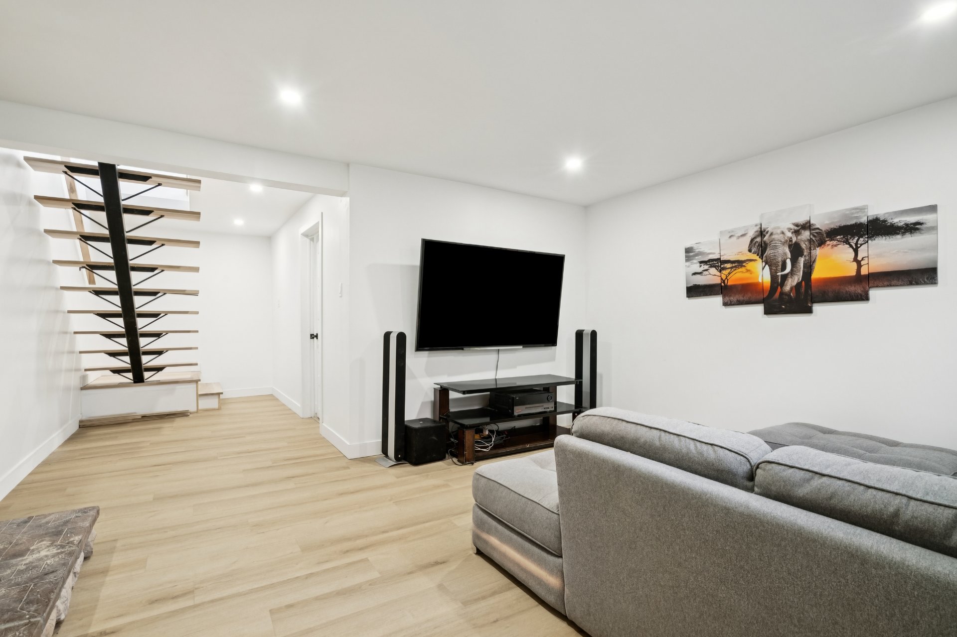 Le sous-sol entièrement aménagé offre un espace de vie