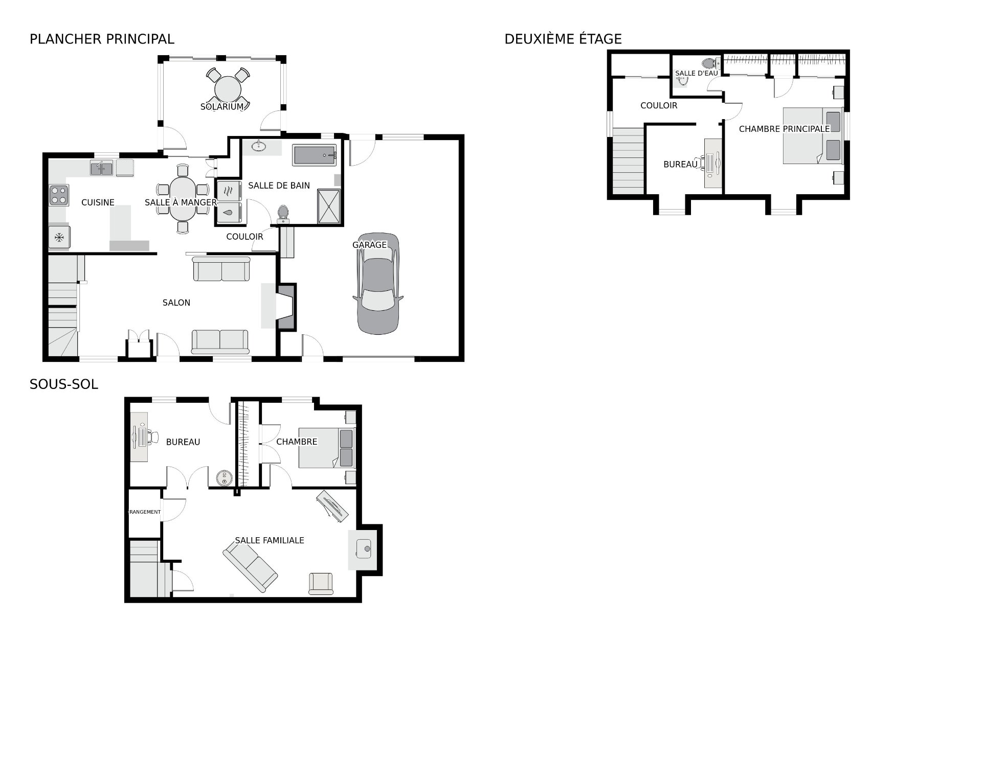 | Chambre à coucher | 9.3 x 8.3 P | 2ième étage | Plancher flottant |