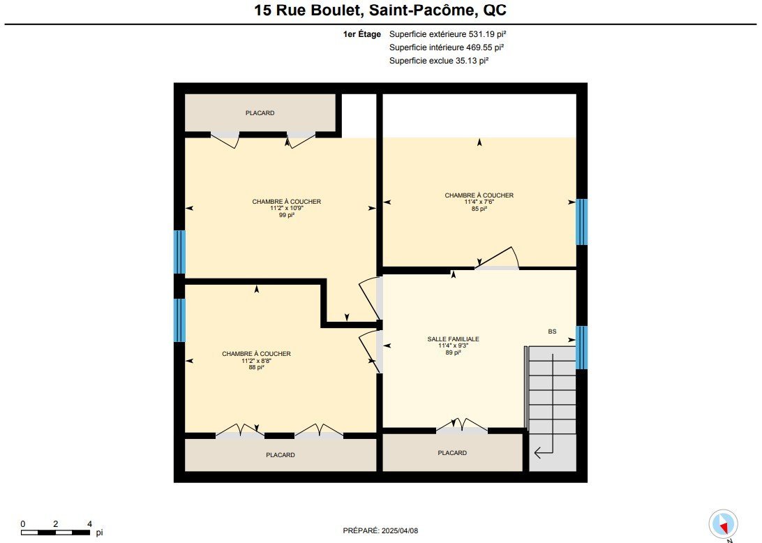 | Chambre à coucher | 11.2 x 8.8 P | 2ième étage | PVC |
