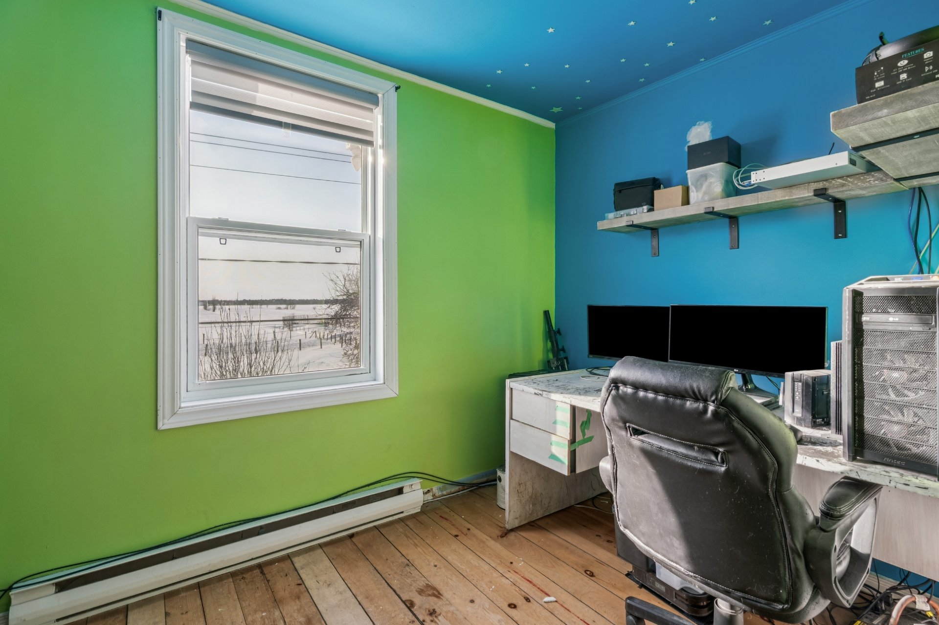 Chambre 1 : Plancher de bois, idéale comme bureau ou salle