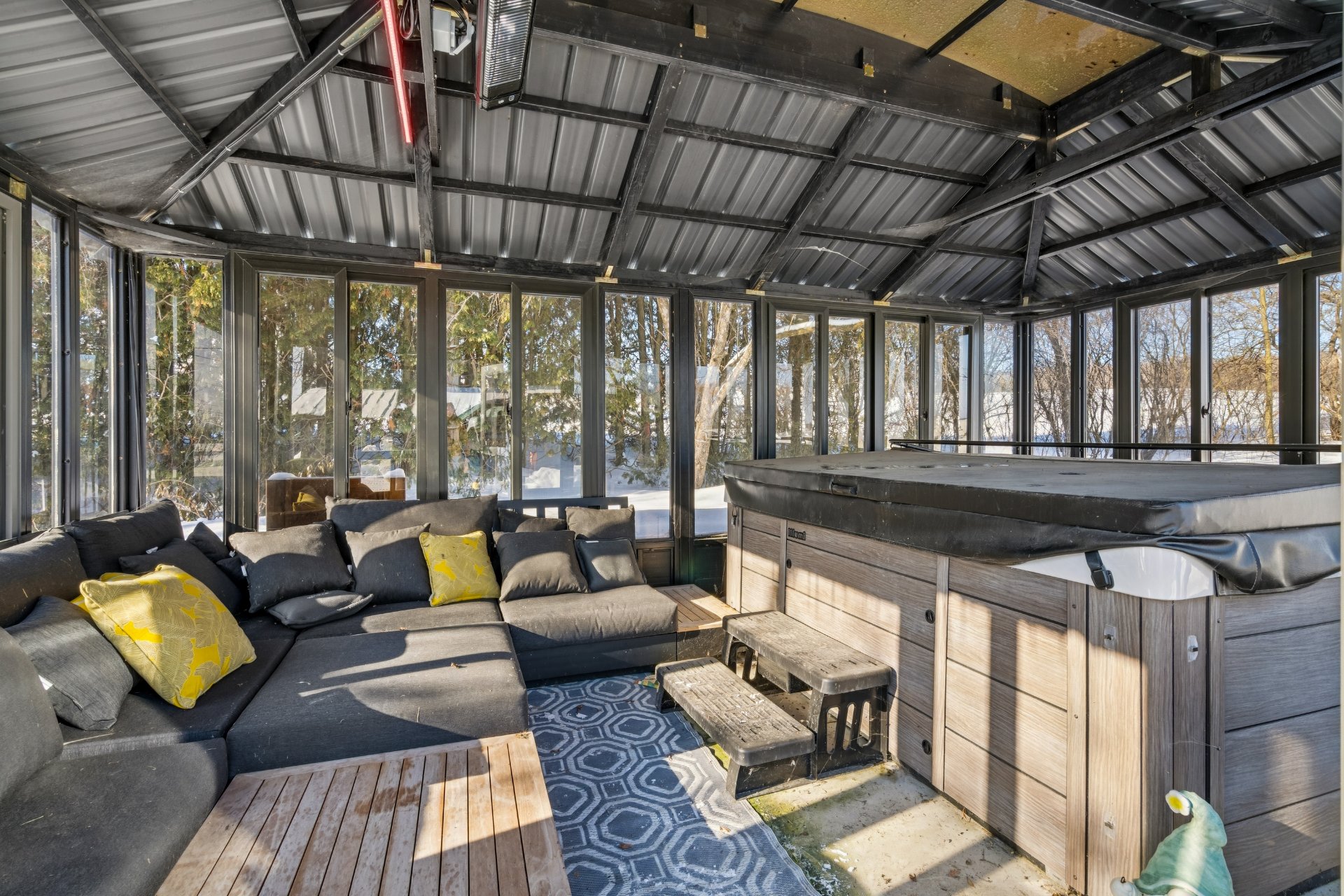 -Gazebo vitré fermé avec spa.