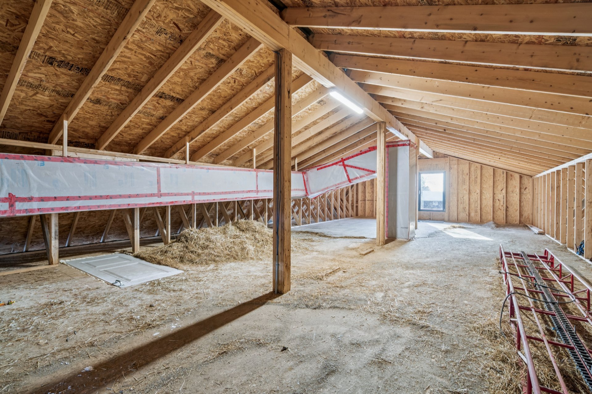 sous l'escalier, fenil à l'étage, terrasse.