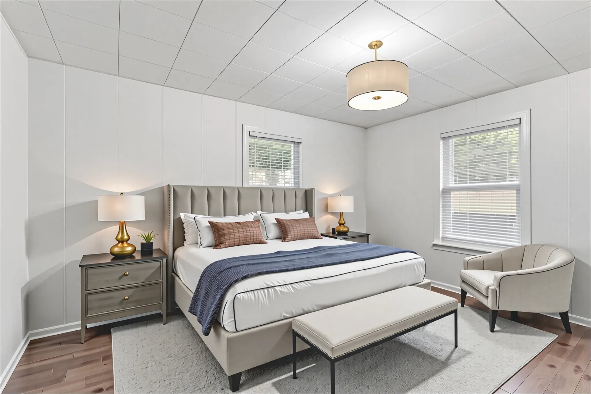 | Chambre à coucher principale | 14 x 11 P | Rez-de-chaussée | Bois |