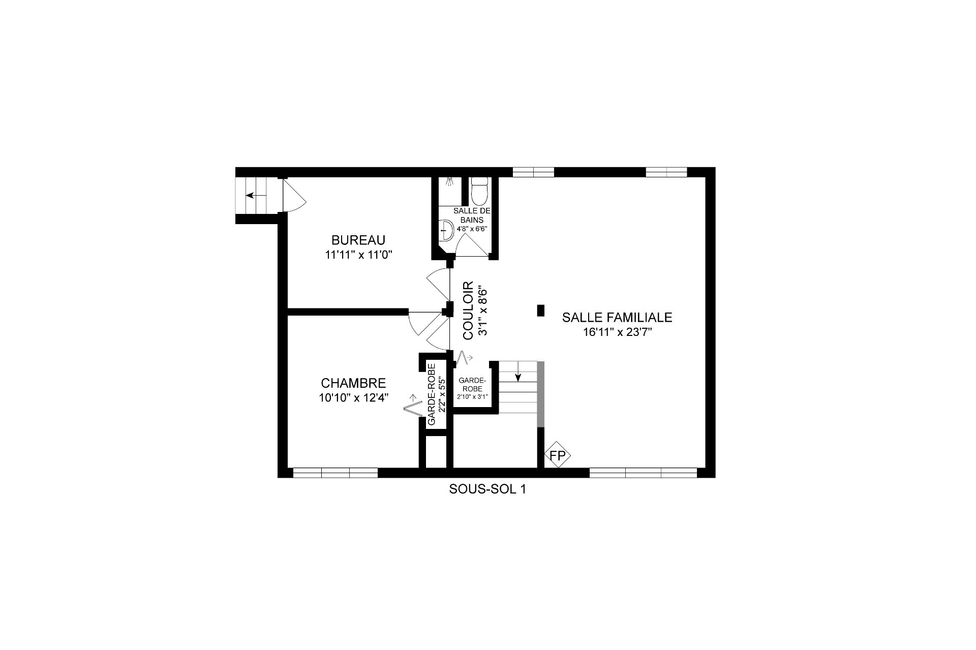 Chambre à coucher 16.11 x 9.0 P Sous-sol Bois