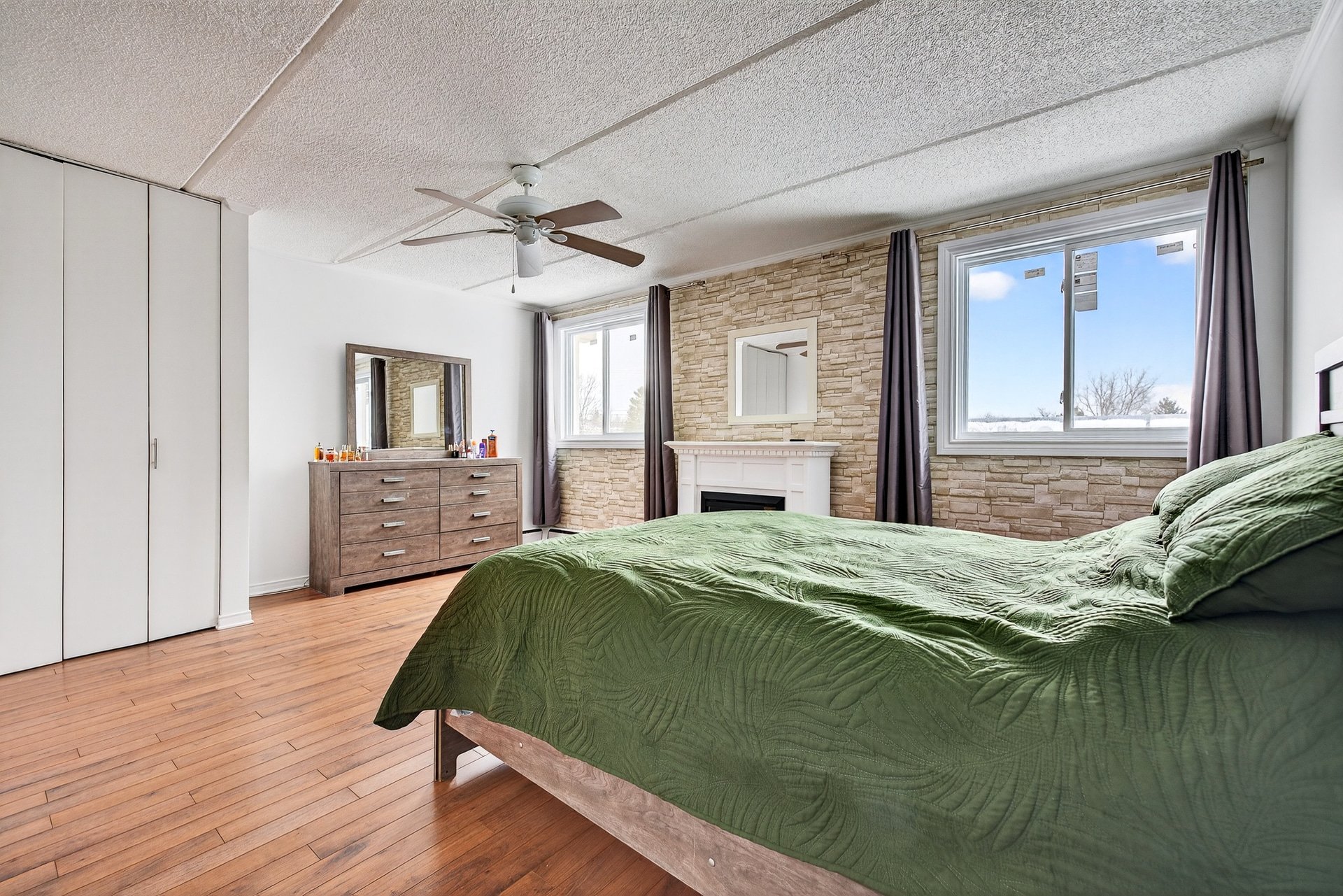 -Chambre principale avec foyer électrique ajoutant confort