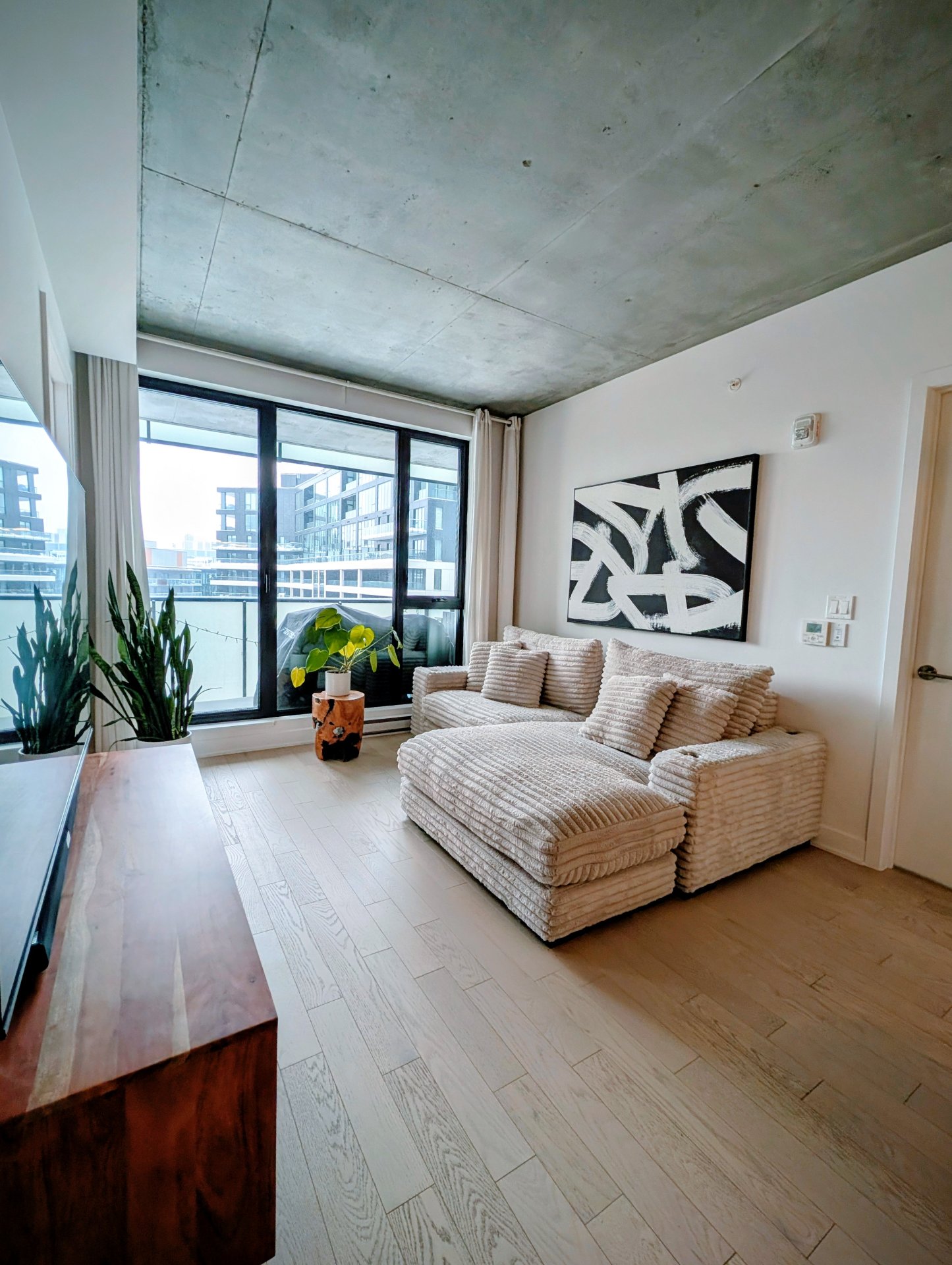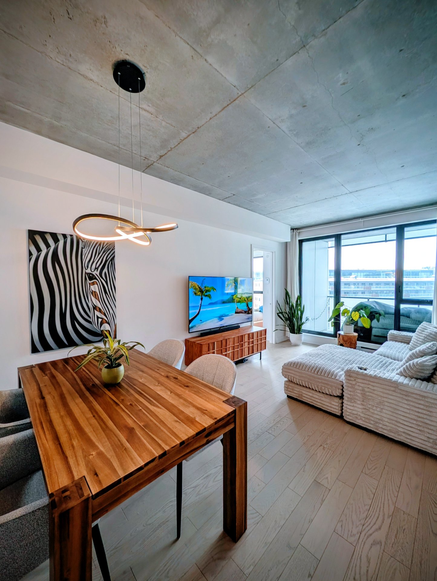 Vivez l'expérience Solar Uniquartier - ORIA Phase 2 ! Condo lumineux de 2 chambres avec deux grands walk-ins, magnifique lumière naturelle toute la journée et superbes couchers de soleil depuis le balcon. Inclut un garage intérieur (SS1) et un espace de rangement au garage. À 5 minutes du REM et à 15 minutes du centre-ville de Montréal, à distance de marche du DIX30, cafés, boutiques, pistes cyclables et parc urbain. Commodités haut de gamme : piscines intérieure, extérieure et sur le toit, spa avec saunas, gym complet, lounge panoramique, terrasse avec BBQ et jardin communautaire. Un style de vie moderne et clé au coeur de Brossard.