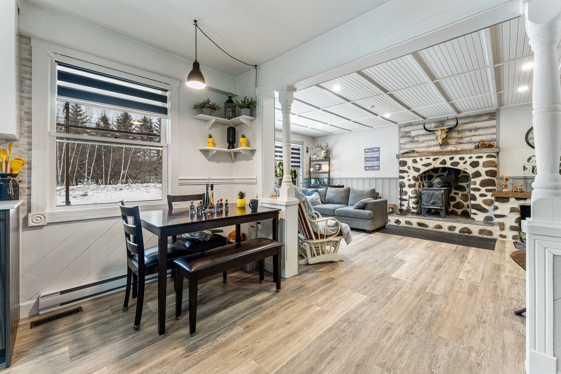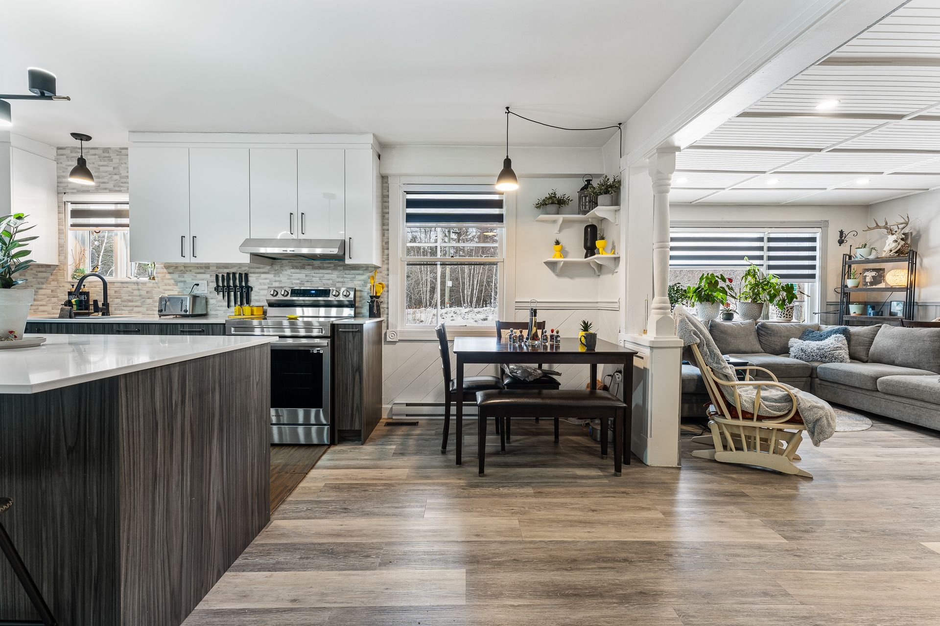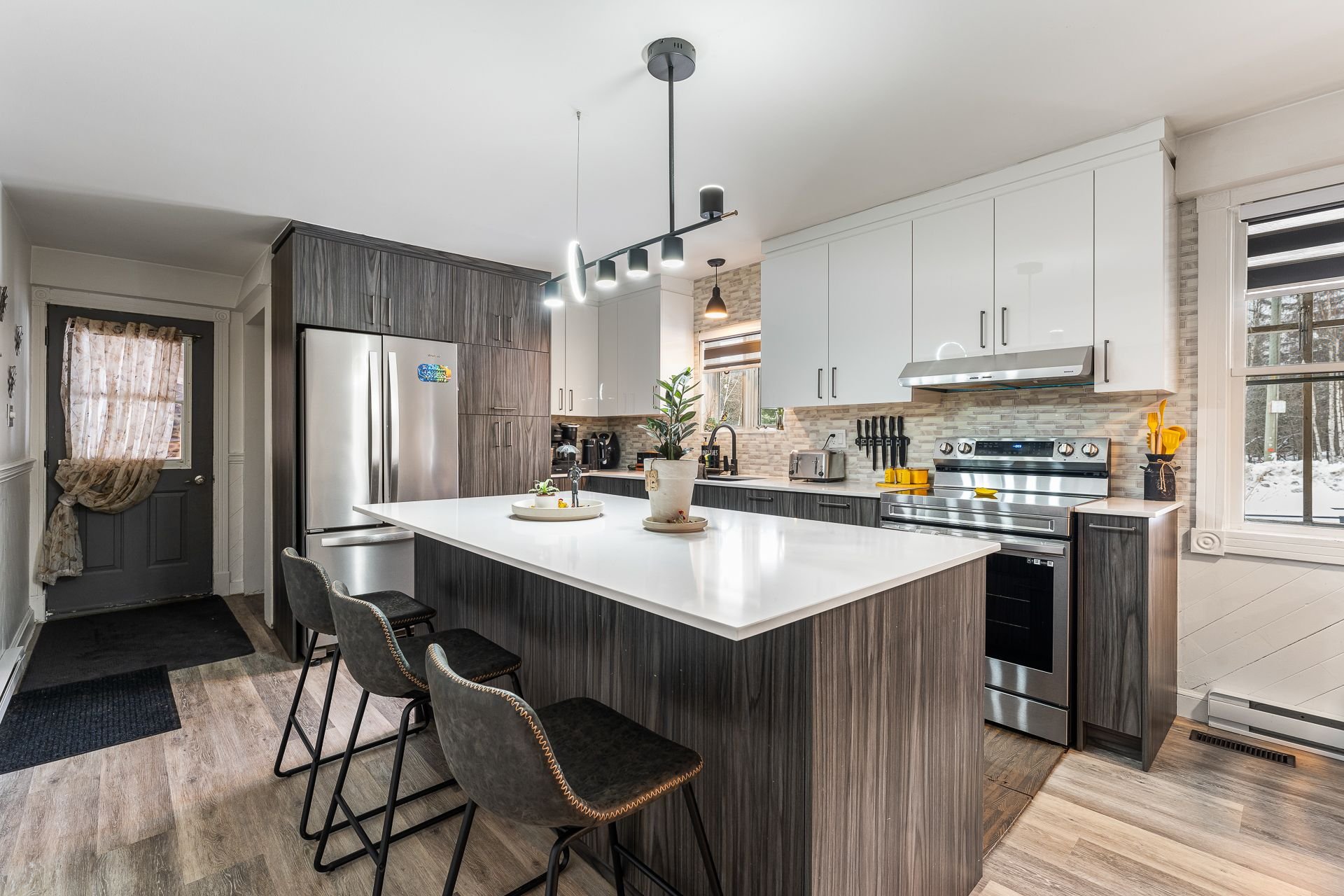 Superbe propriété située sur un terrain boisé de plus de 2,21 acres, offrant une intimité remarquable sans voisin à l'arrière. L'environnement paisible met en valeur un cadre naturel recherché. La maison propose une aire ouverte lumineuse grâce à une généreuse fenestration. La cuisine rénovée en 2023 offre beaucoup de rangement et s'intègre harmonieusement aux espaces de vie. Le salon avec poêle au bois crée une ambiance chaleureuse. Quatre chambres de bonnes dimensions, une salle de bain avec installation laveuse-sécheuse et un garage attaché complètent l'ensemble. Située à 15 minutes du Parc national du Mont-Orford et près des commodités.