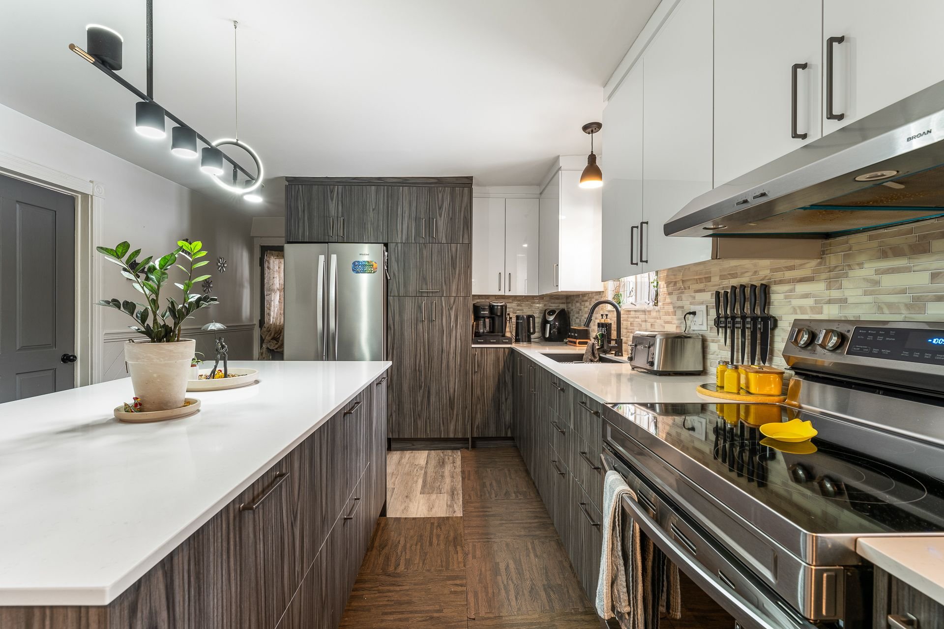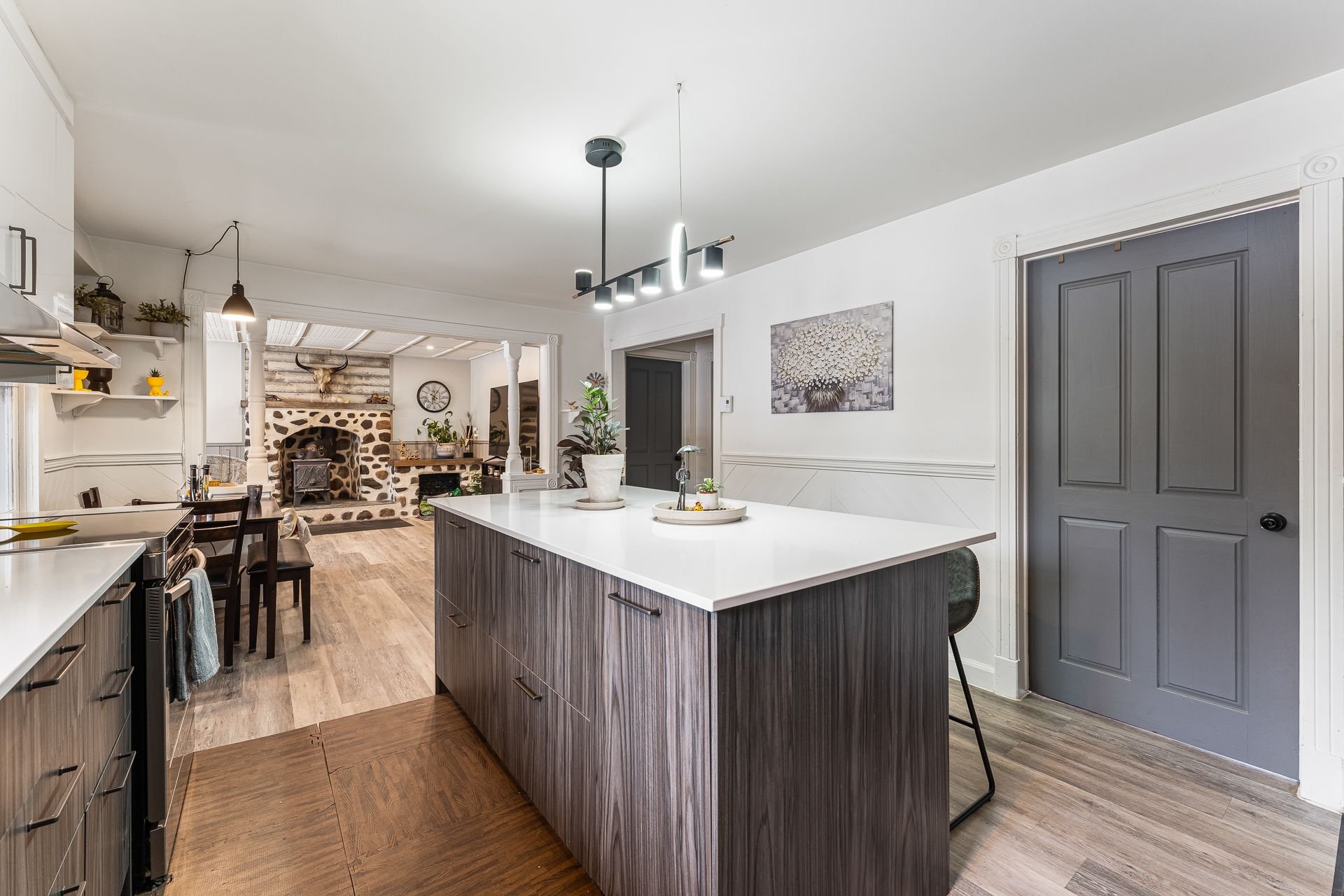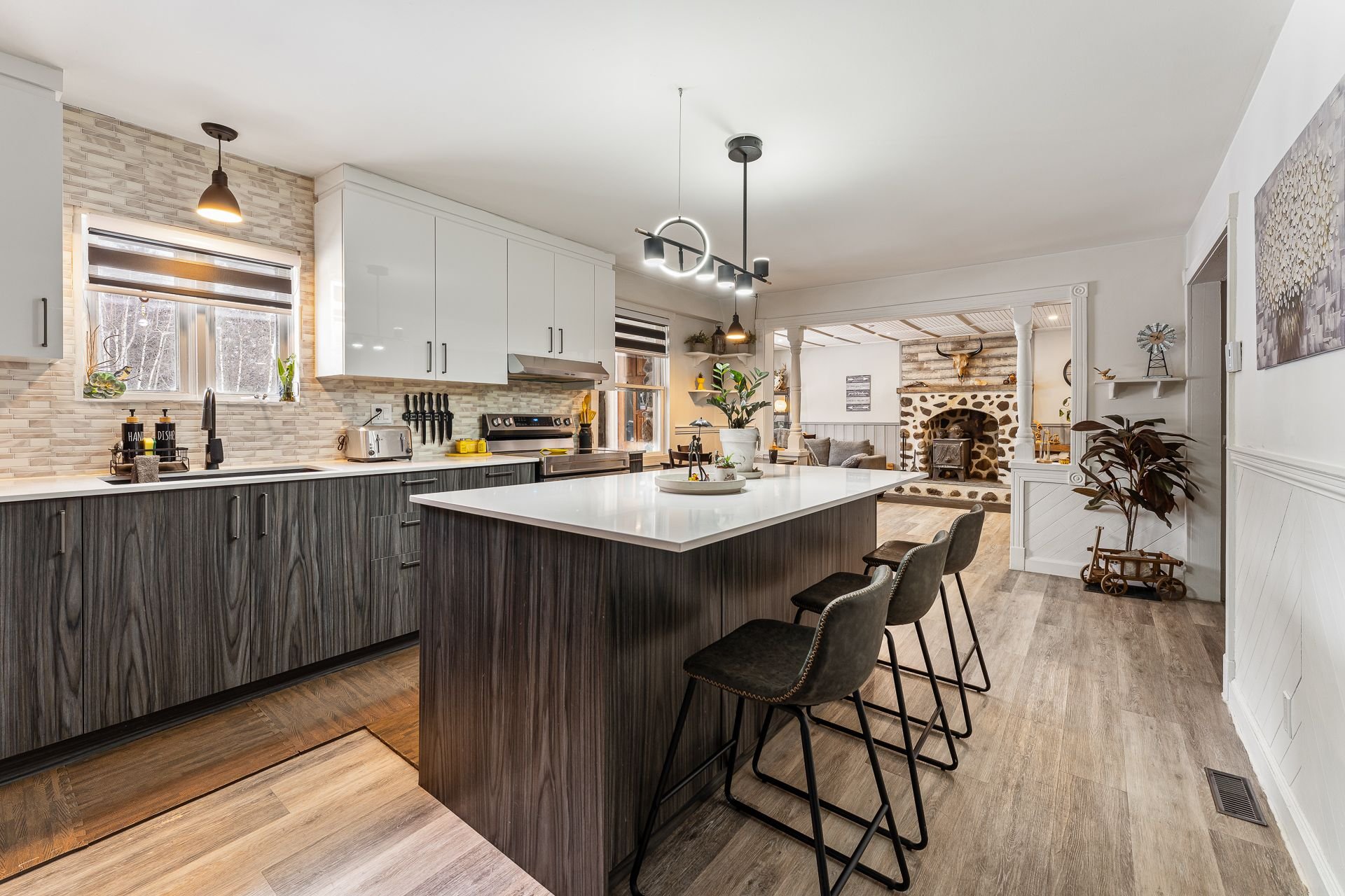 Superbe propriété située sur un terrain boisé de plus de 2,21 acres, offrant une intimité remarquable sans voisin à l'arrière. L'environnement paisible met en valeur un cadre naturel recherché. La maison propose une aire ouverte lumineuse grâce à une généreuse fenestration. La cuisine rénovée en 2023 offre beaucoup de rangement et s'intègre harmonieusement aux espaces de vie. Le salon avec poêle au bois crée une ambiance chaleureuse. Quatre chambres de bonnes dimensions, une salle de bain avec installation laveuse-sécheuse et un garage attaché complètent l'ensemble. Située à 15 minutes du Parc national du Mont-Orford et près des commodités.