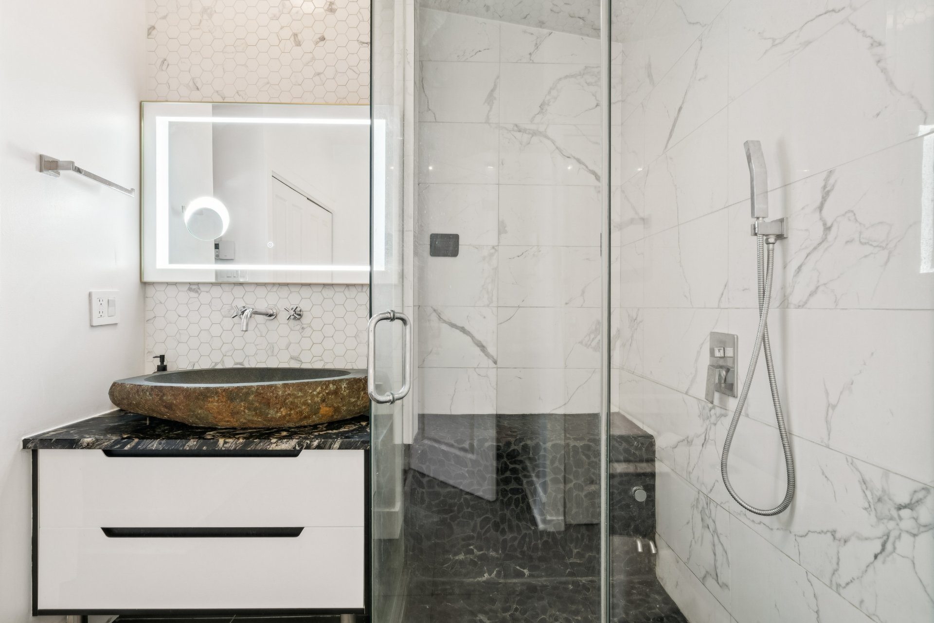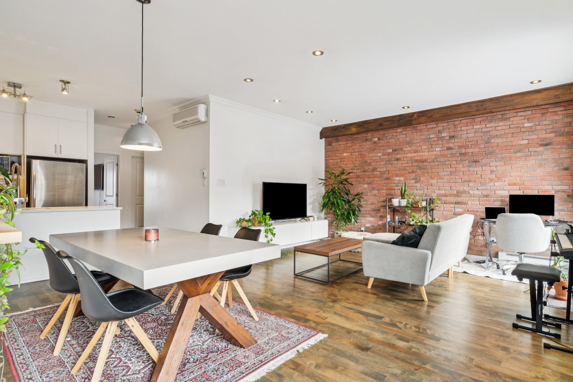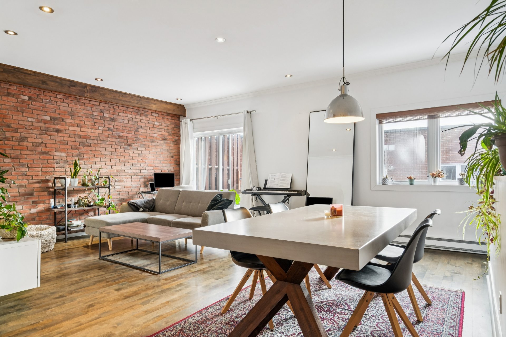 des matériaux haut de gamme, dont un mur de brique exposée