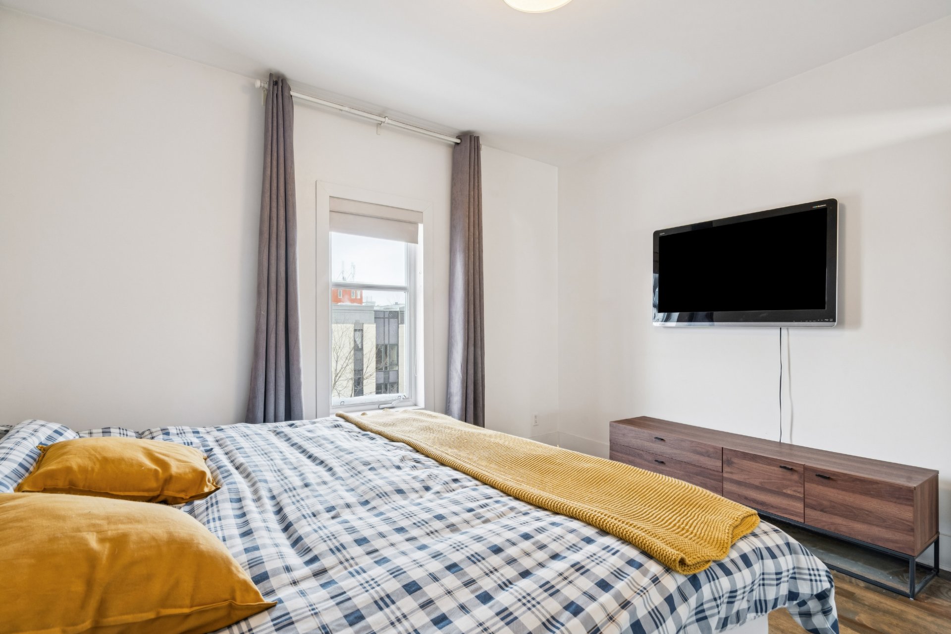 Superbe condo moderne de deux chambres et une salle de bain, situé au dernier étage. Aire ouverte cuisine, salle à manger et salon donnant accès à une grande terrasse privée. Rénové avec des matériaux haut de gamme, incluant un mur de brique exposée. Planchers de bois franc et plafonds de 9 pieds. Secteur résidentiel calme près du centre-ville, des services, du fleuve et du Vieux-Montréal. Stationnement intérieur et espace de rangement inclus. Voir ADDENDA.