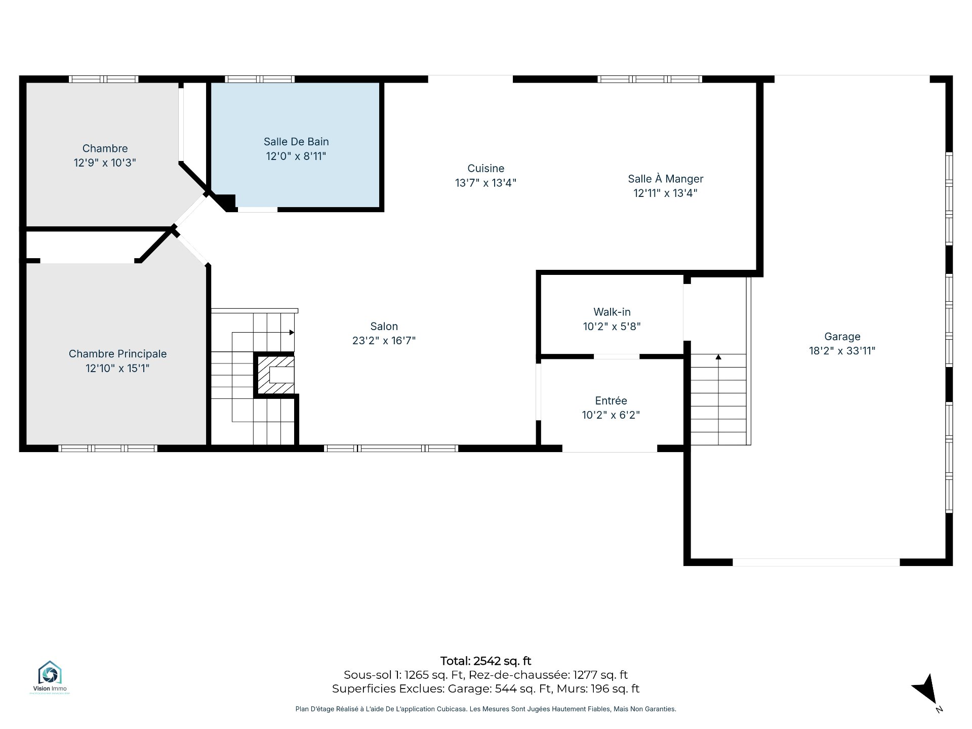 | Penderie (Walk-in) | 9.9 x 5.5 P | Sous-sol | Plancher flottant |