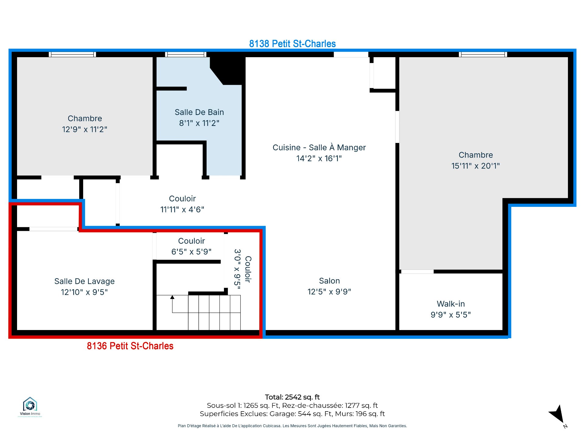 | Salon | 12.5 x 9.9 P | Sous-sol | Plancher flottant |